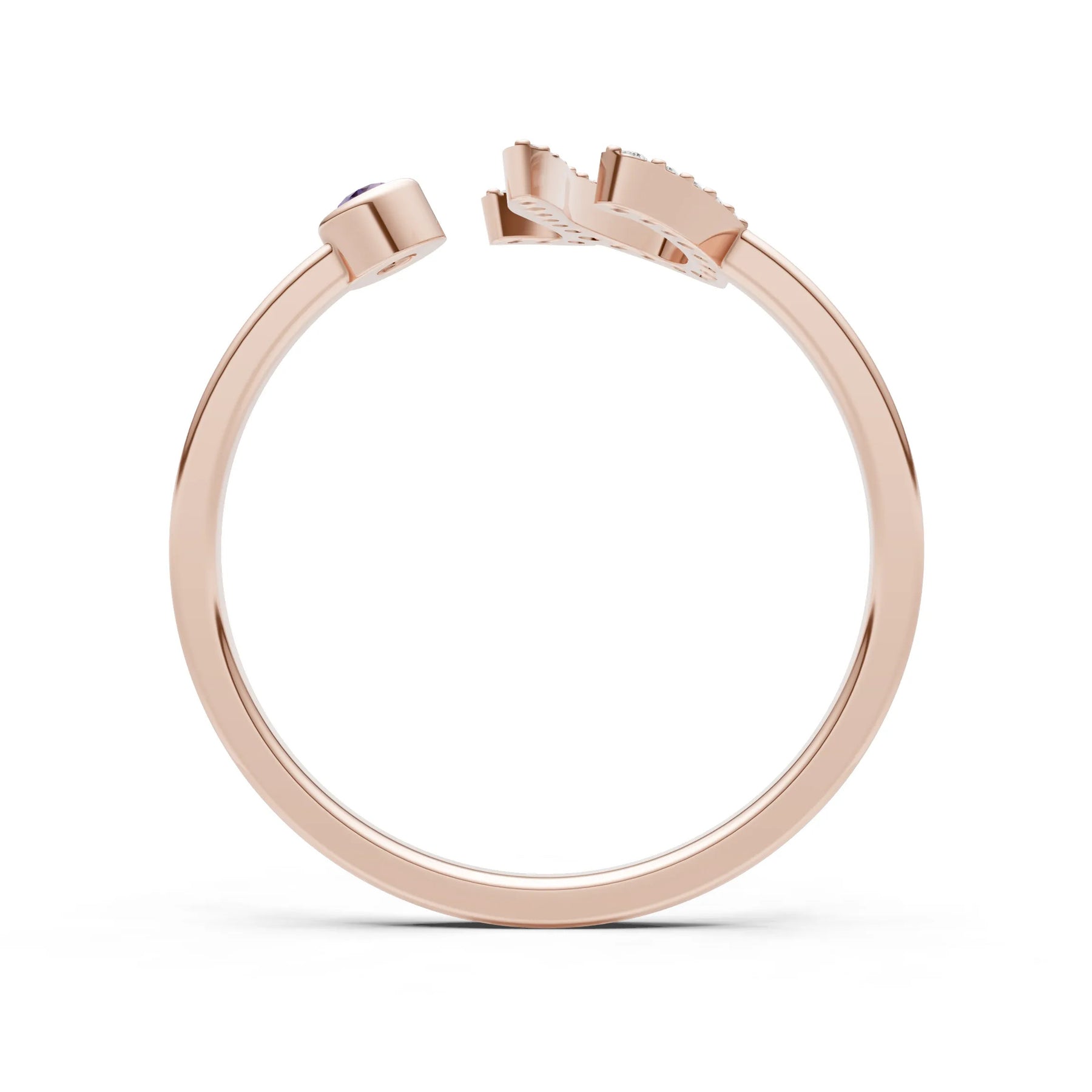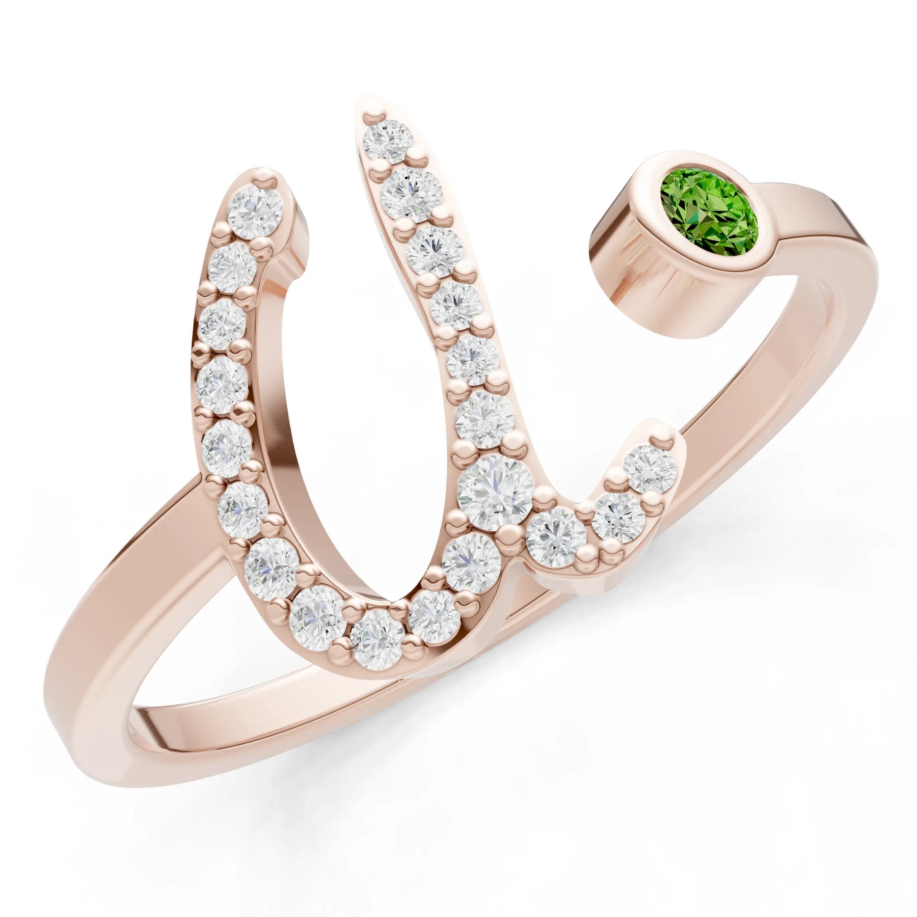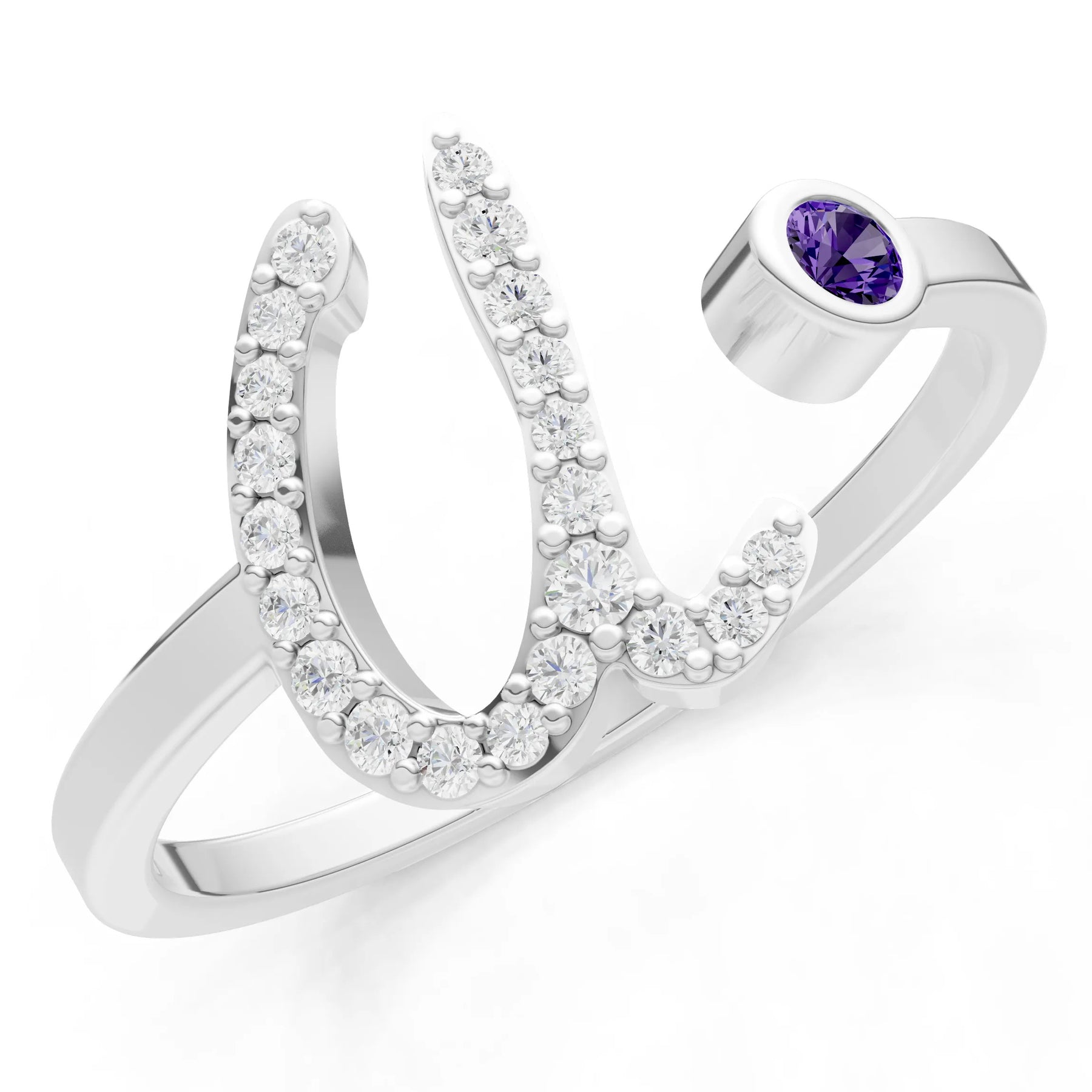 Dainty Initial Letter Birthstone Open Ring – U