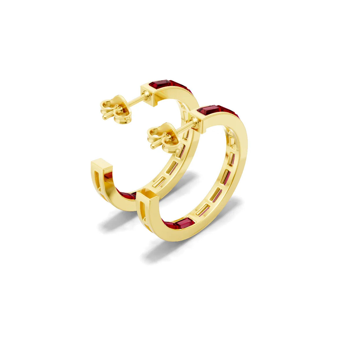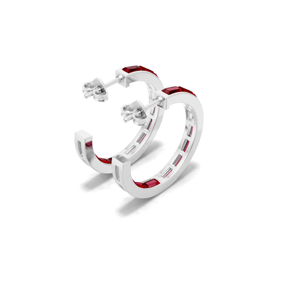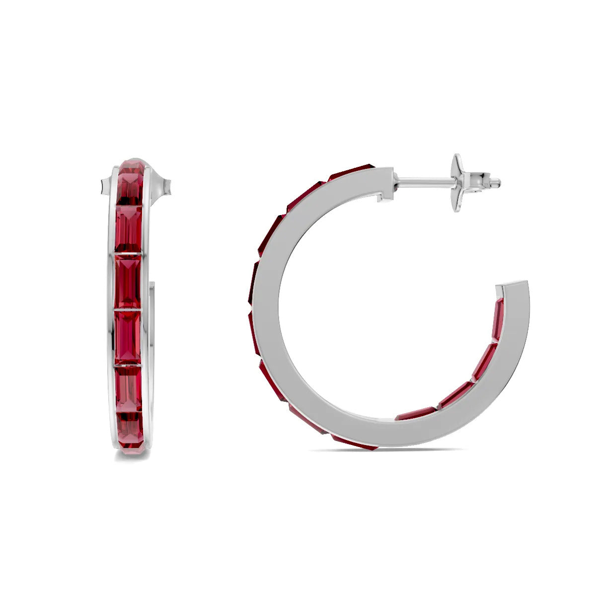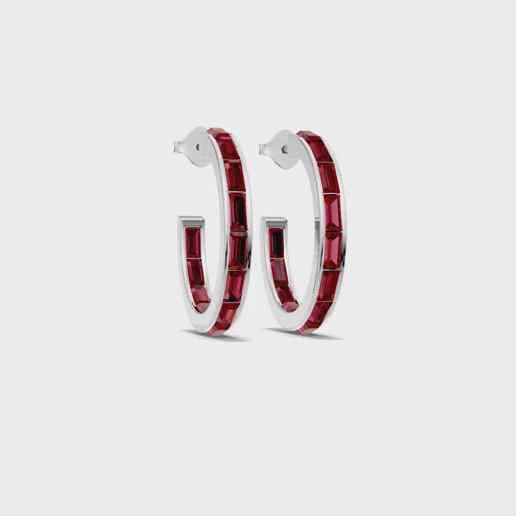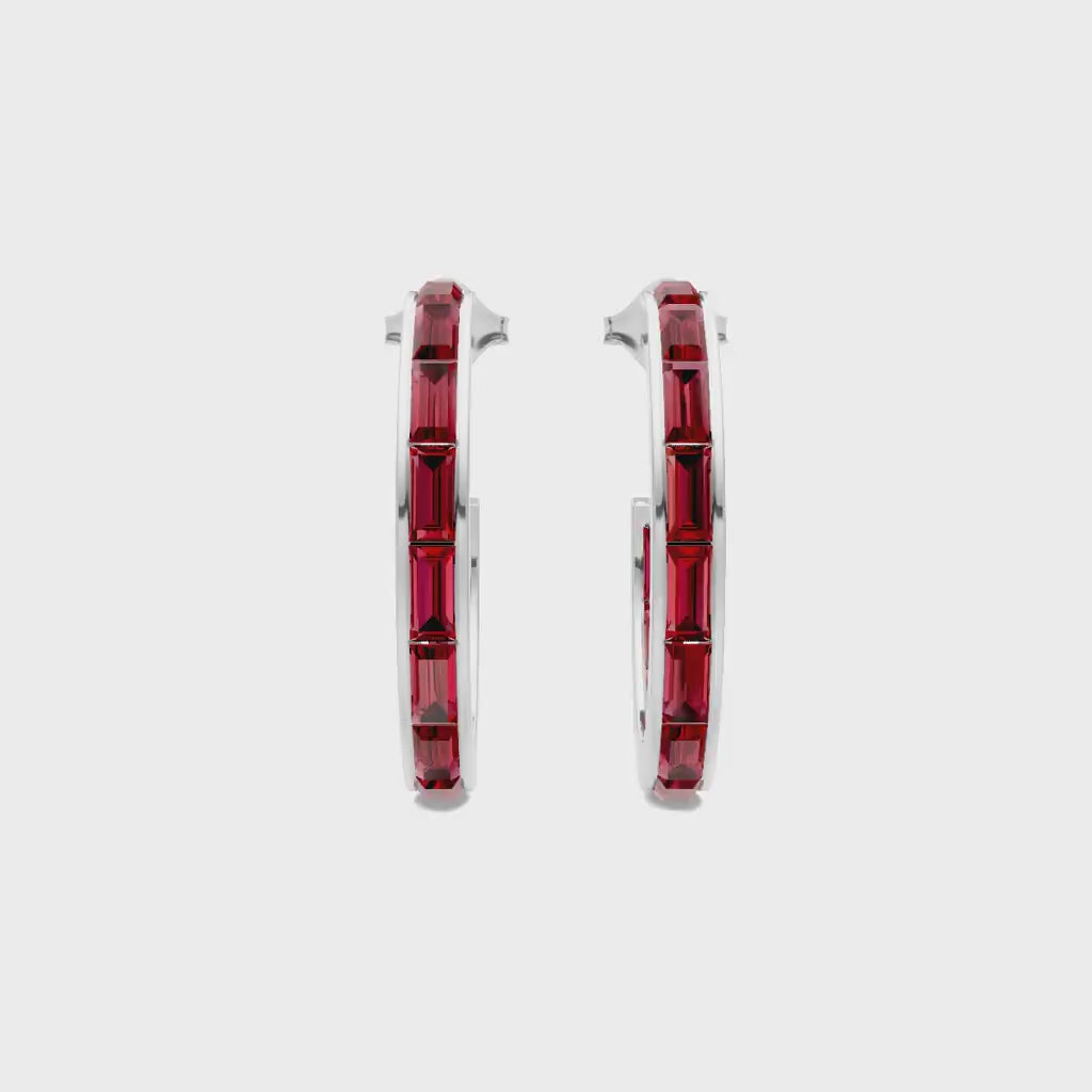 Ruby Baguette Hoops Earrings