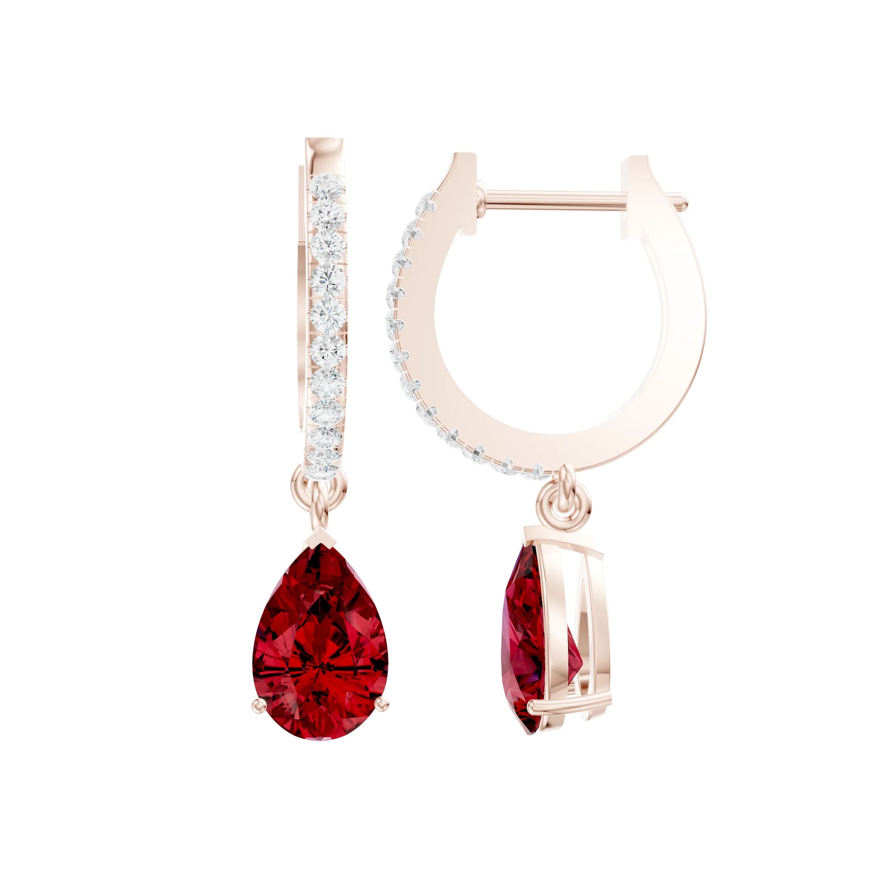Ruby Gemstone Pear Shape Hoop Drop Earrings with Accents - 9x6mm