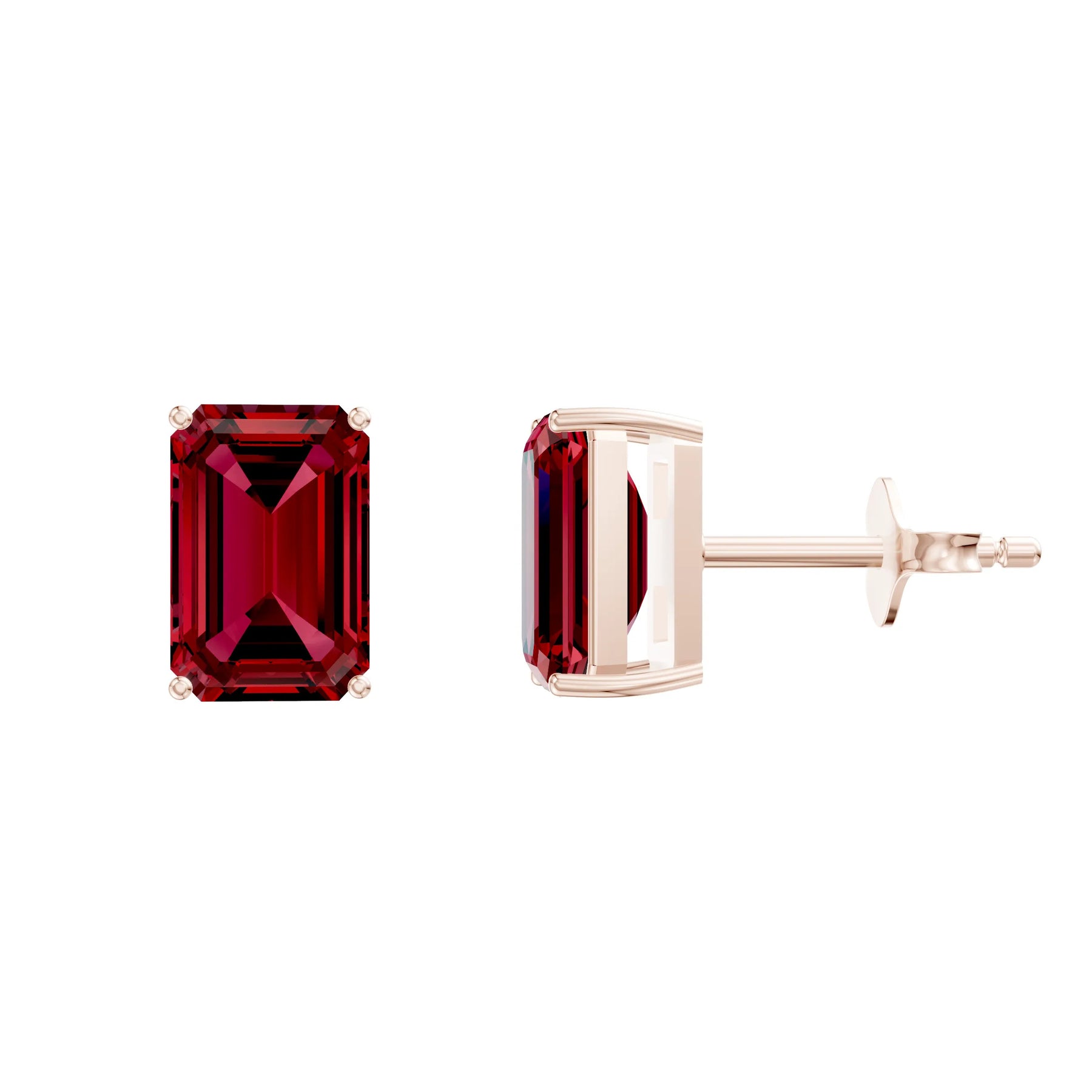 Ruby Octagon Studs - 6x4mm
