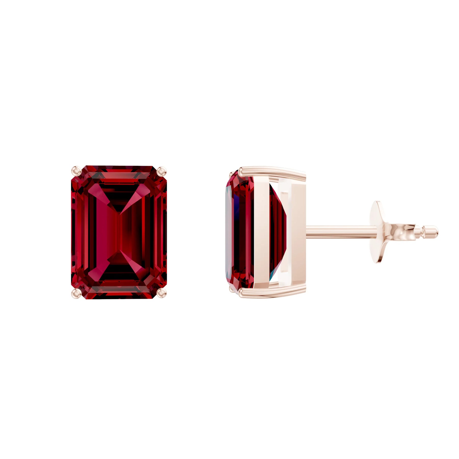 Ruby Octagon Studs Earrings 7x5mm