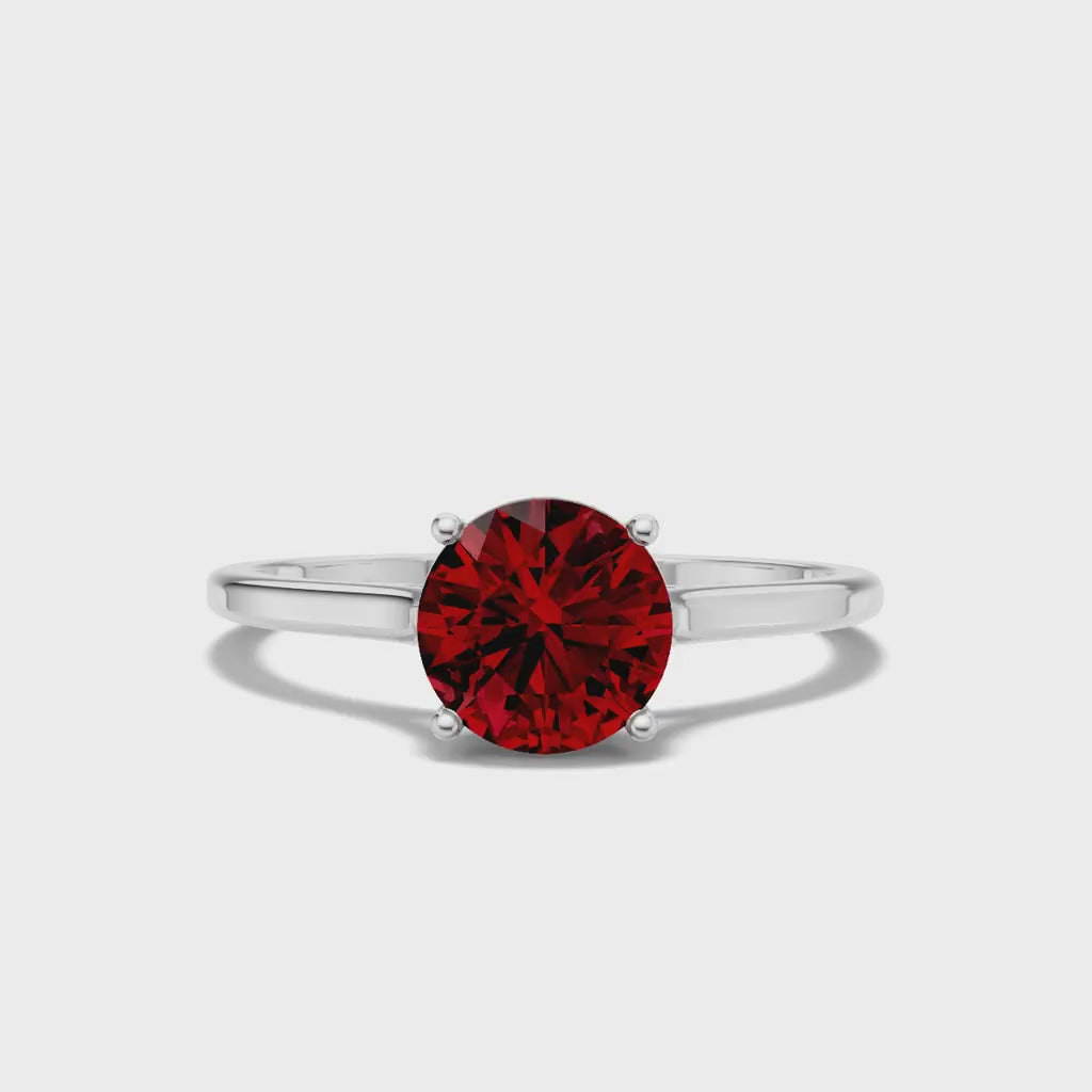 Indulge in the vibrant beauty of our Created Ruby, artfully set in 14k White Gold. This striking round gem, with a brilliant red hue and VS1 clarity, shines within a classic solitaire design, showcasing Peora's commitment to exceptional craftsmanship and quality. At Peora, each piece tells a story, combining the stunning allure of the ruby with sustainable sourcing and meticulous artistry. Embrace luxury with a gemstone that resonates emotionally and aesthetically, packaged in a lavish gift box, perfect for gifting or safekeeping.
