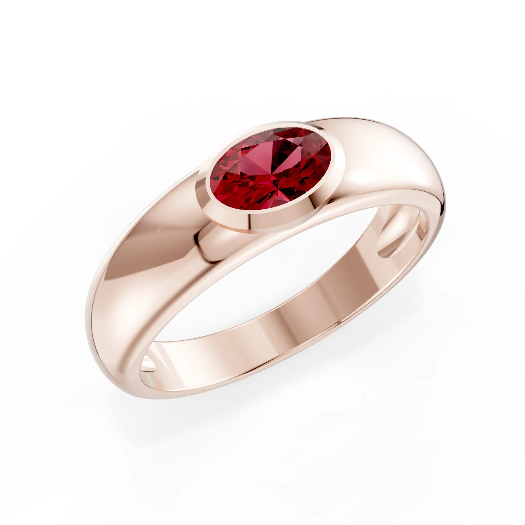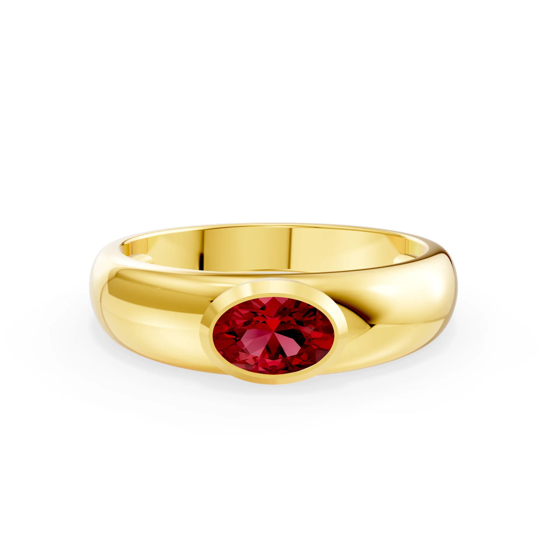 Ruby Bezel Set Oval Cut Signet Ring
