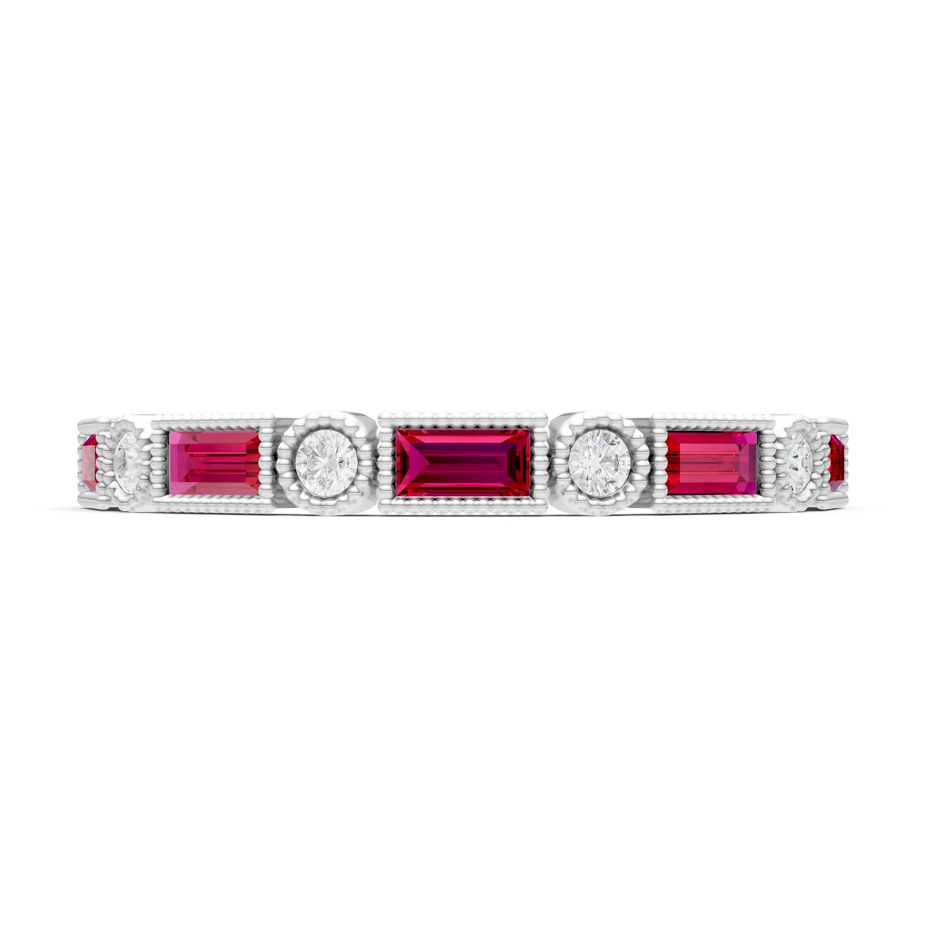 Ruby Dainty Alternating Gemstone Band - Baguette & Round