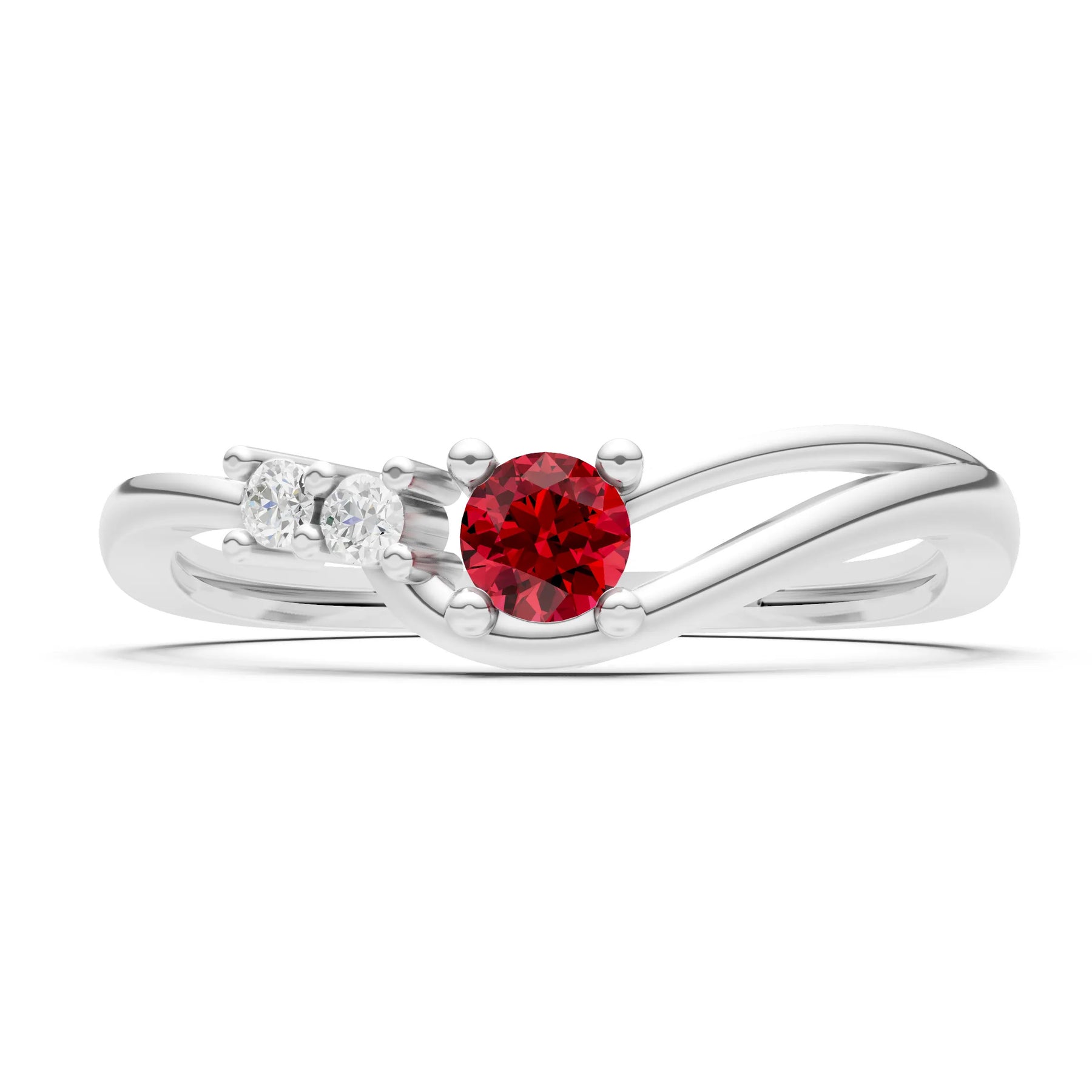 Ruby Dainty Three-Stone Curved Accent Ring - Round