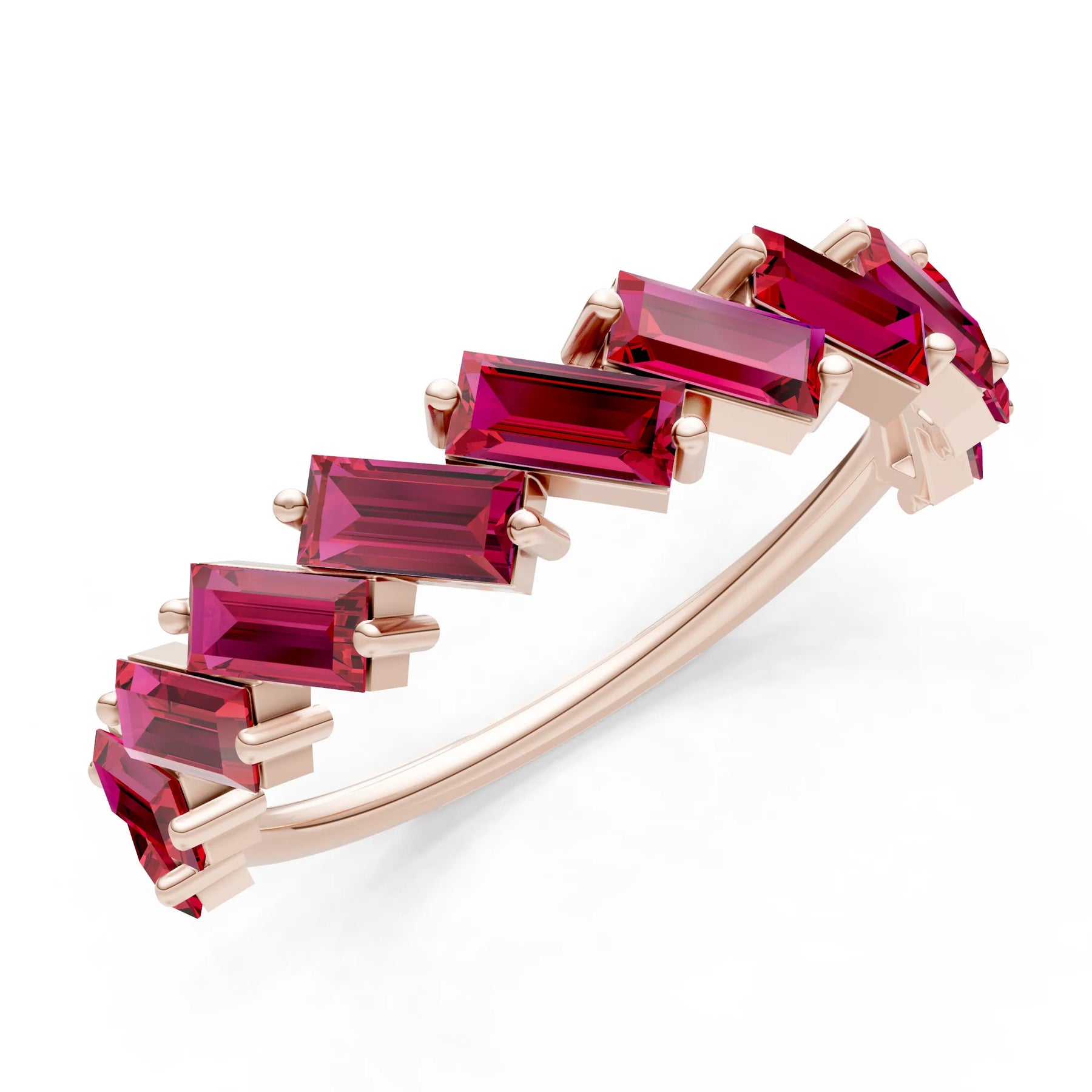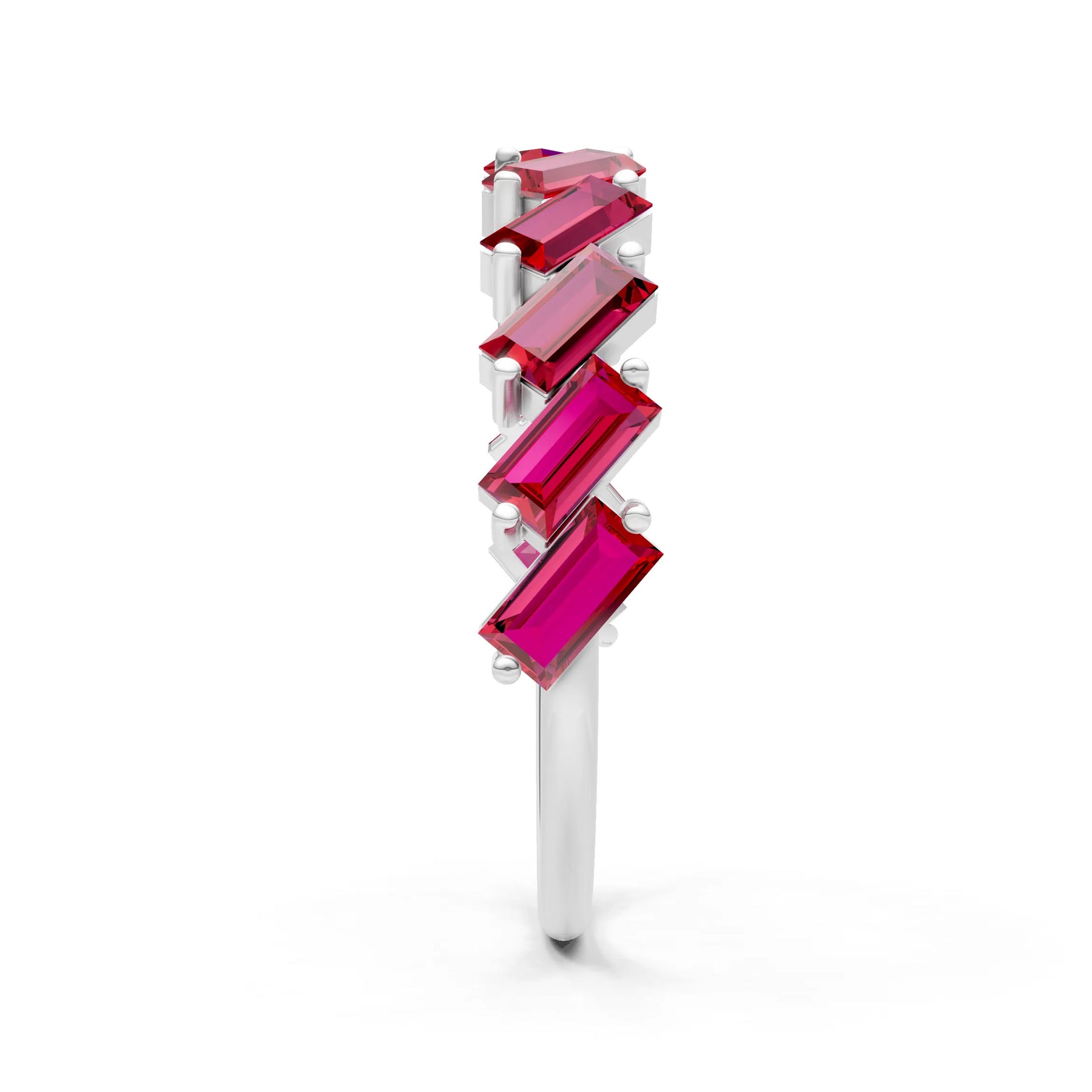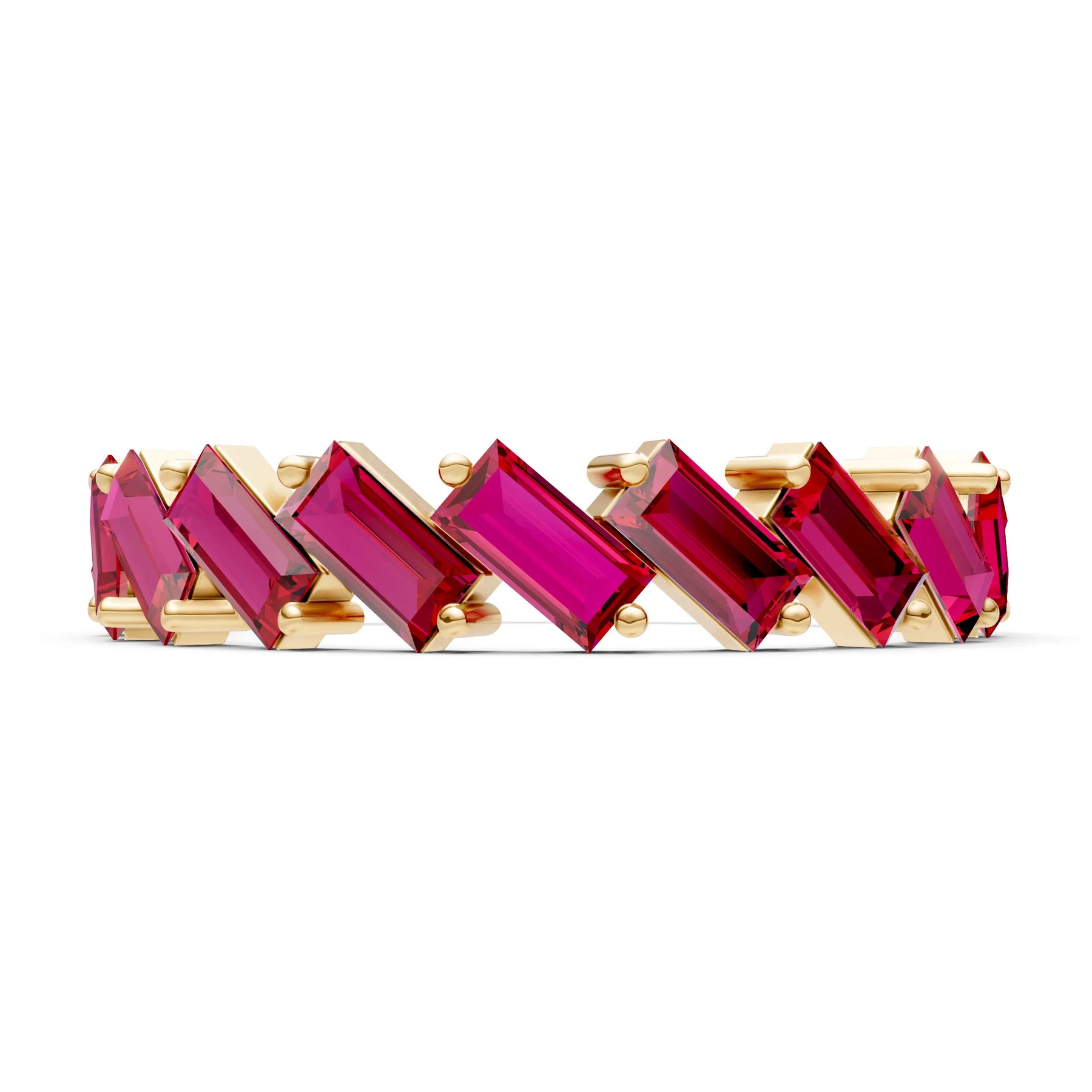 Ruby Dainty Zigzag Baguette Cut Prong Bar Full Band