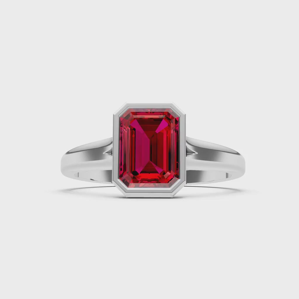 Ruby Emerald Cut Bezel Set Solitaire Ring