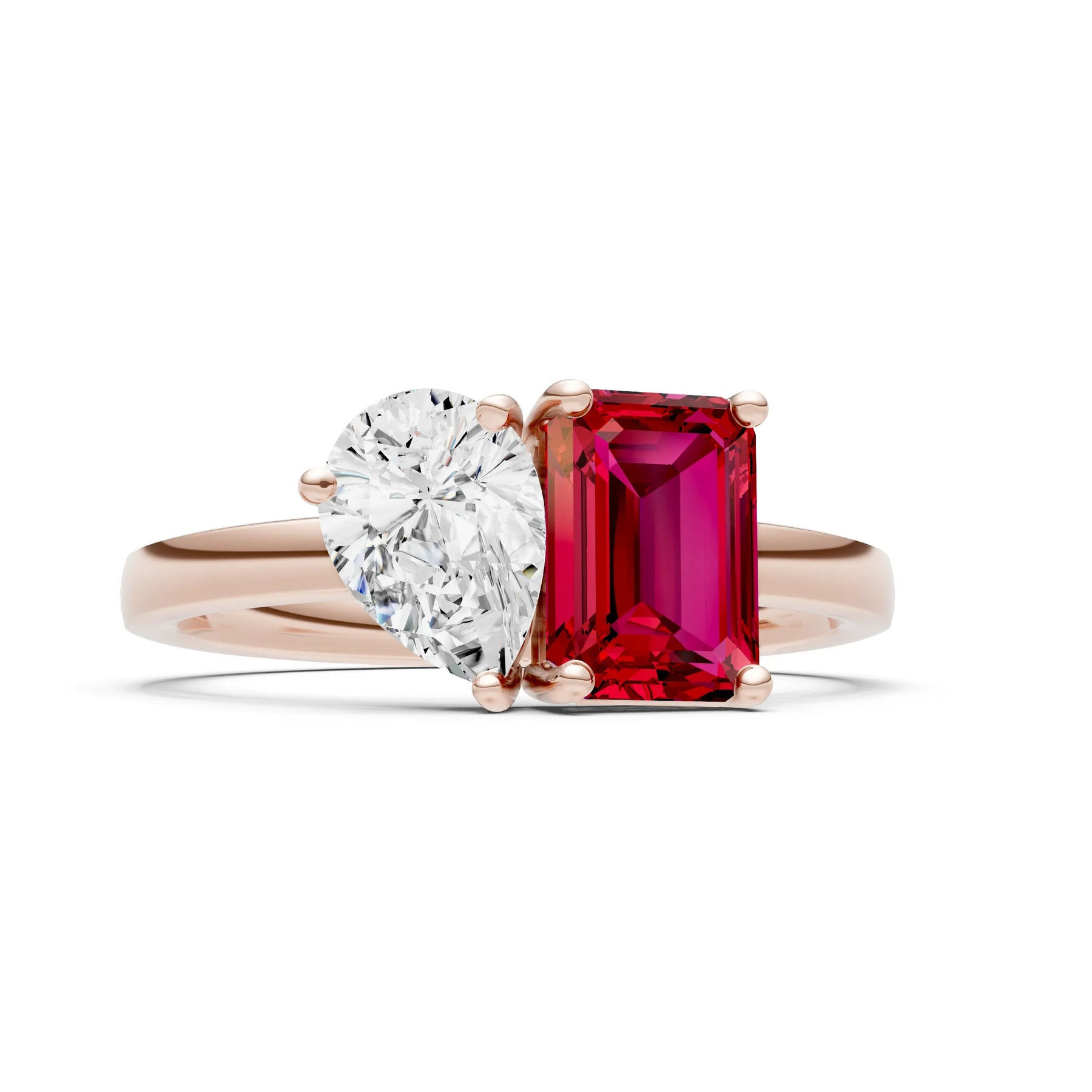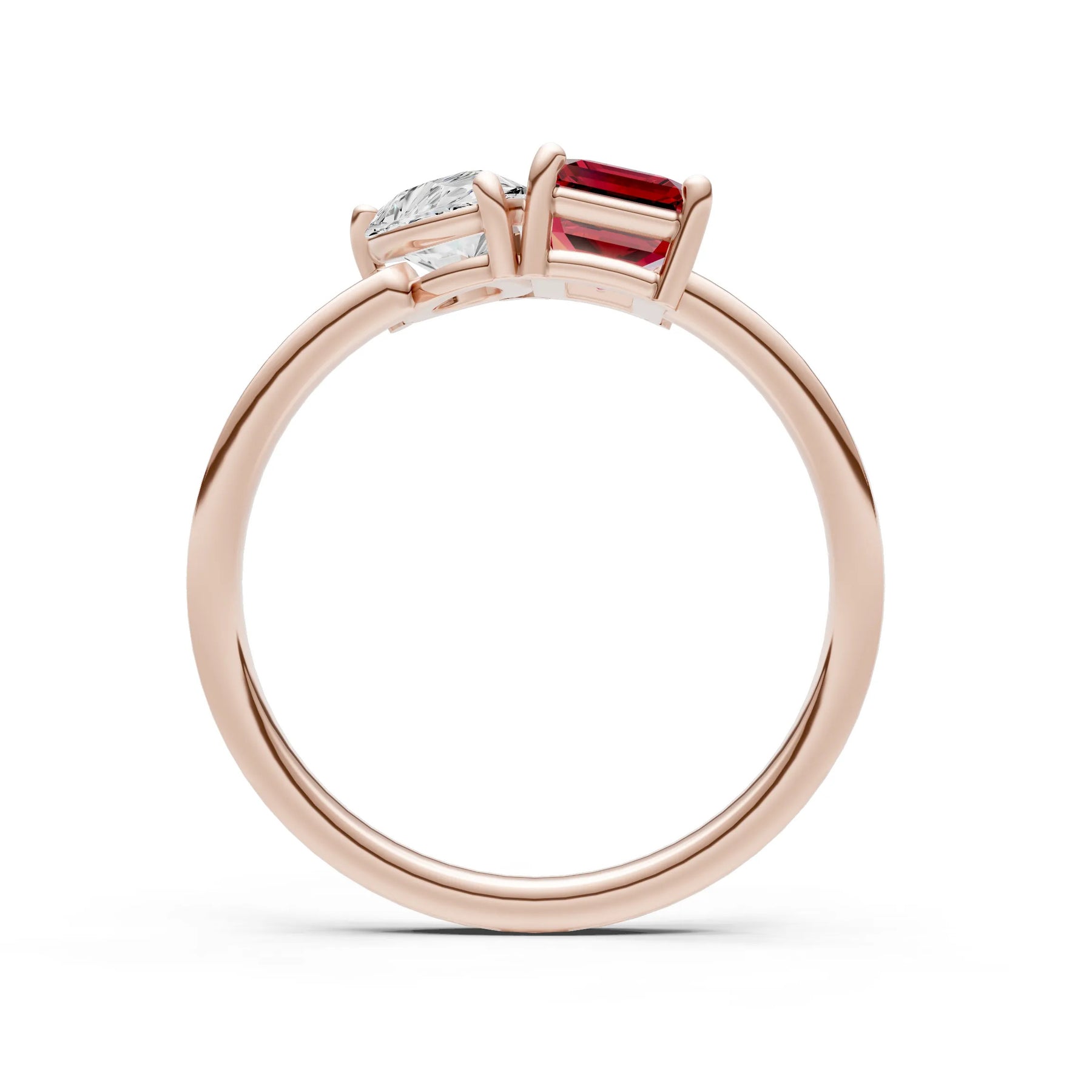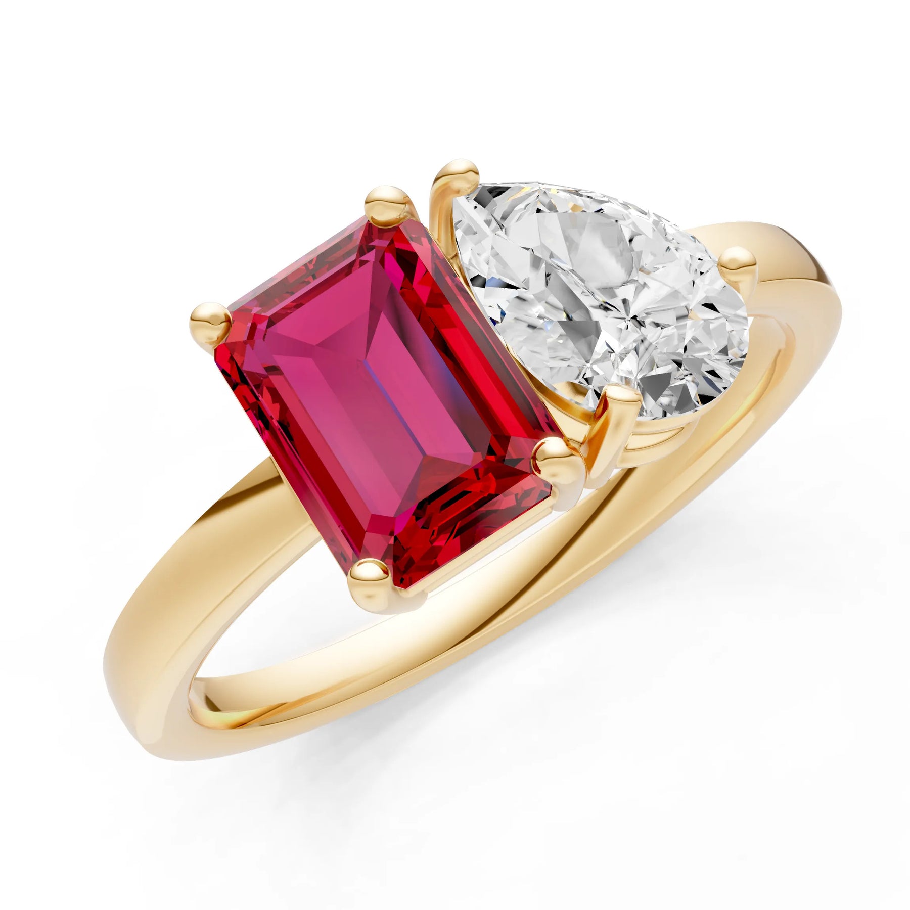 Ruby Emerald Cut Gemstone and Pear Cut Diamond Cocktail Ring