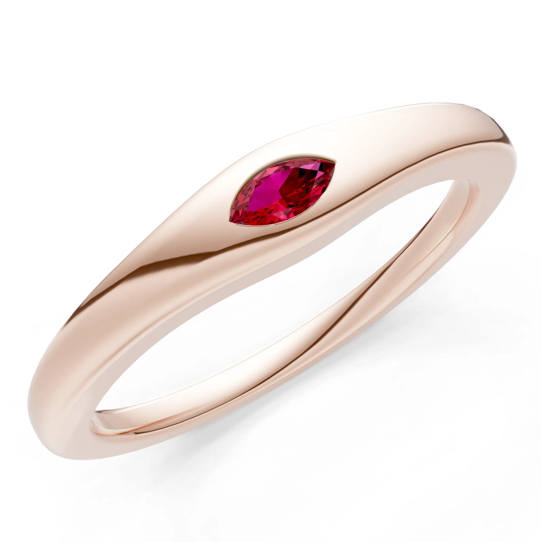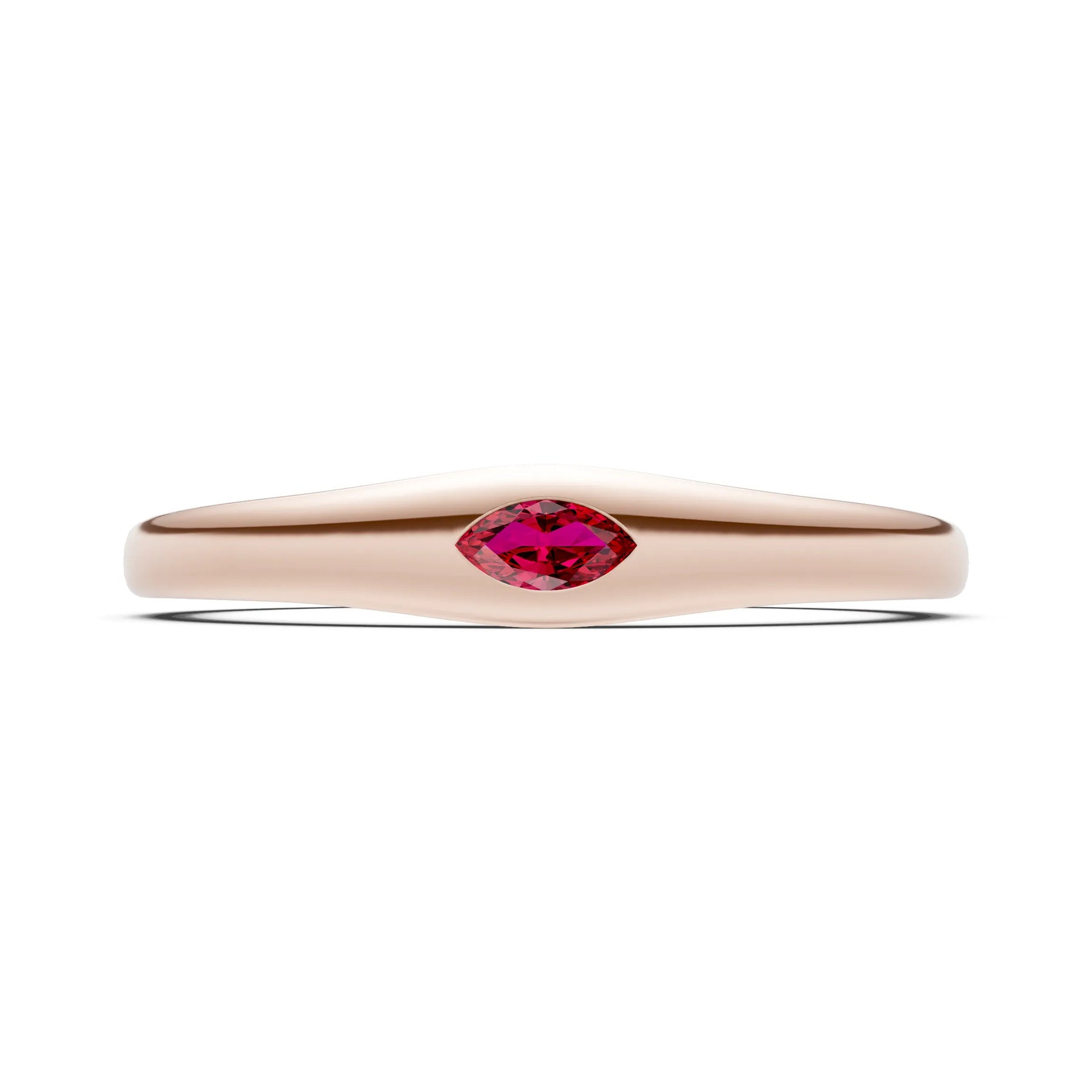 Ruby Flush-Set Marquise Gemstone Mini Signet Ring