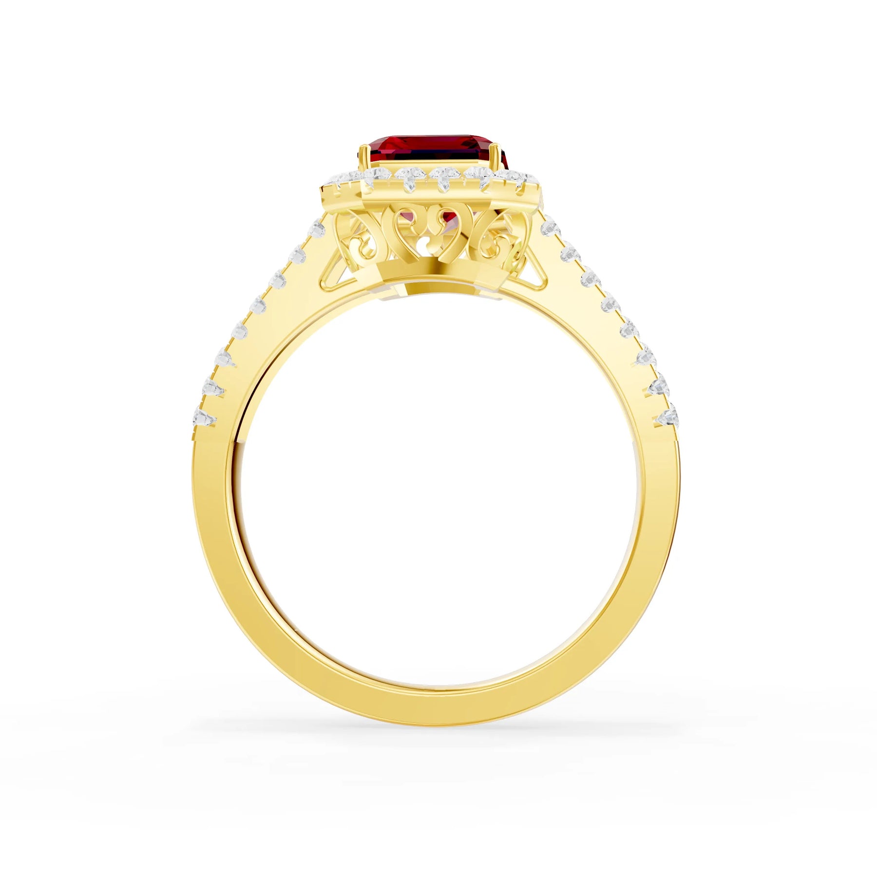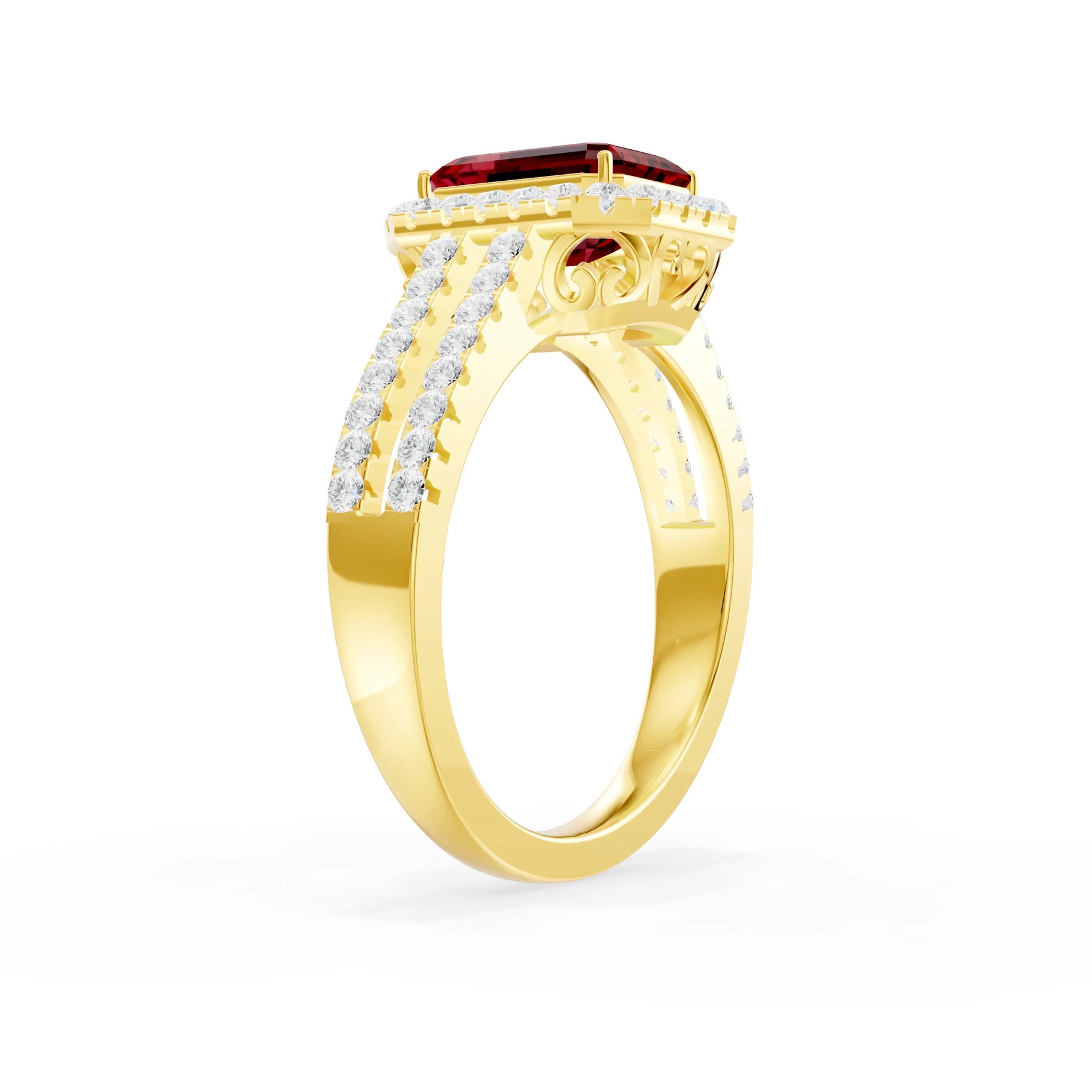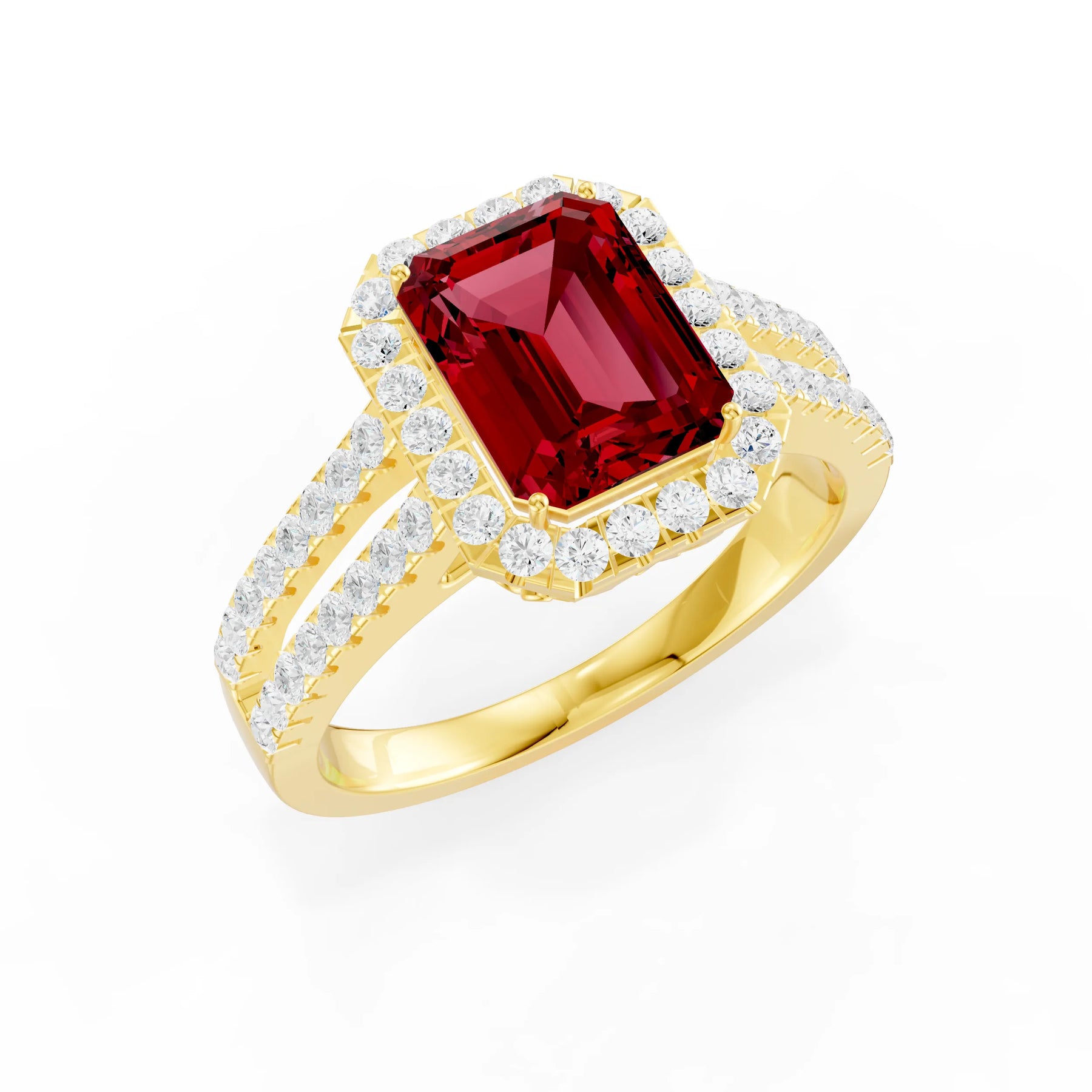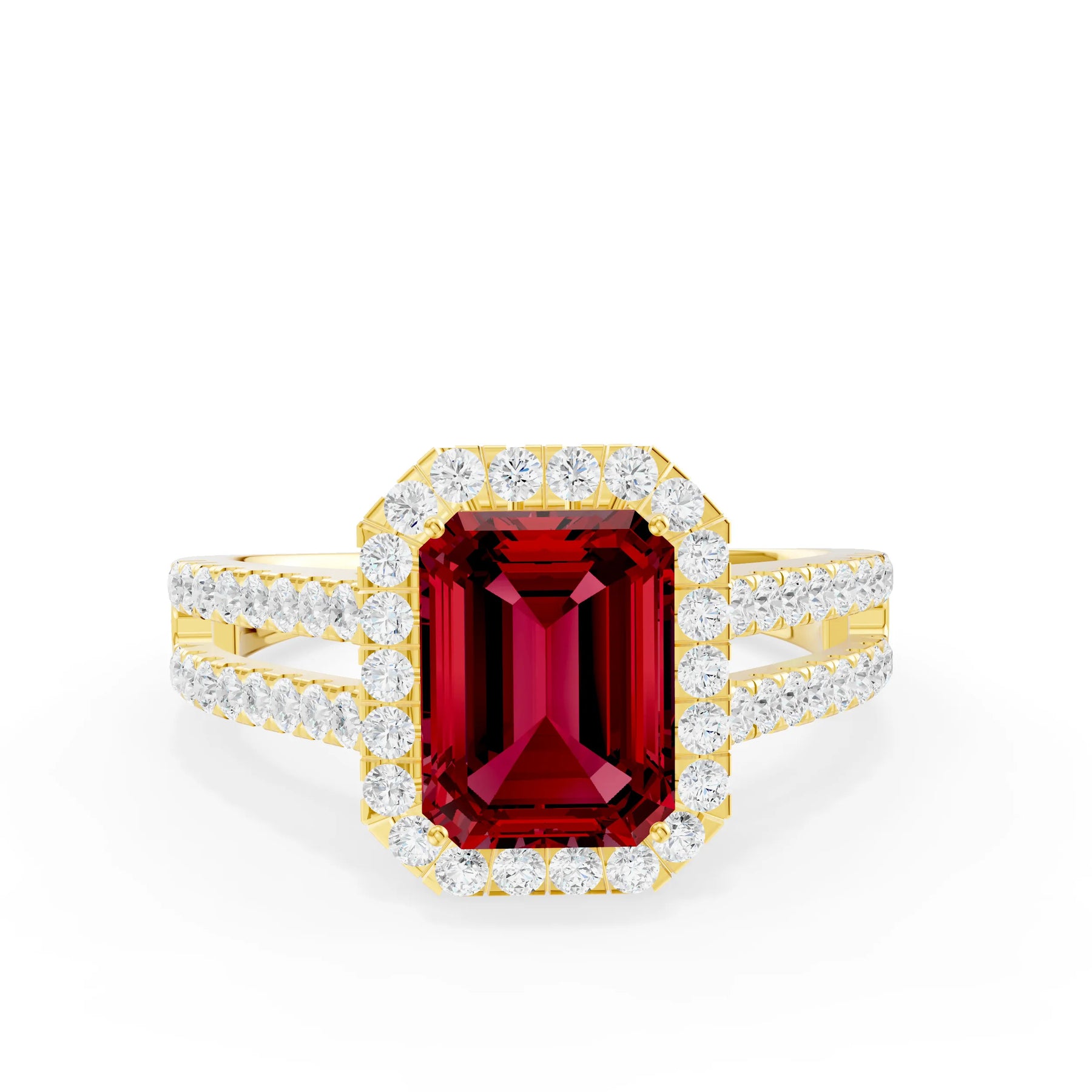 Ruby Halo Double Emerald Cut Band Pave