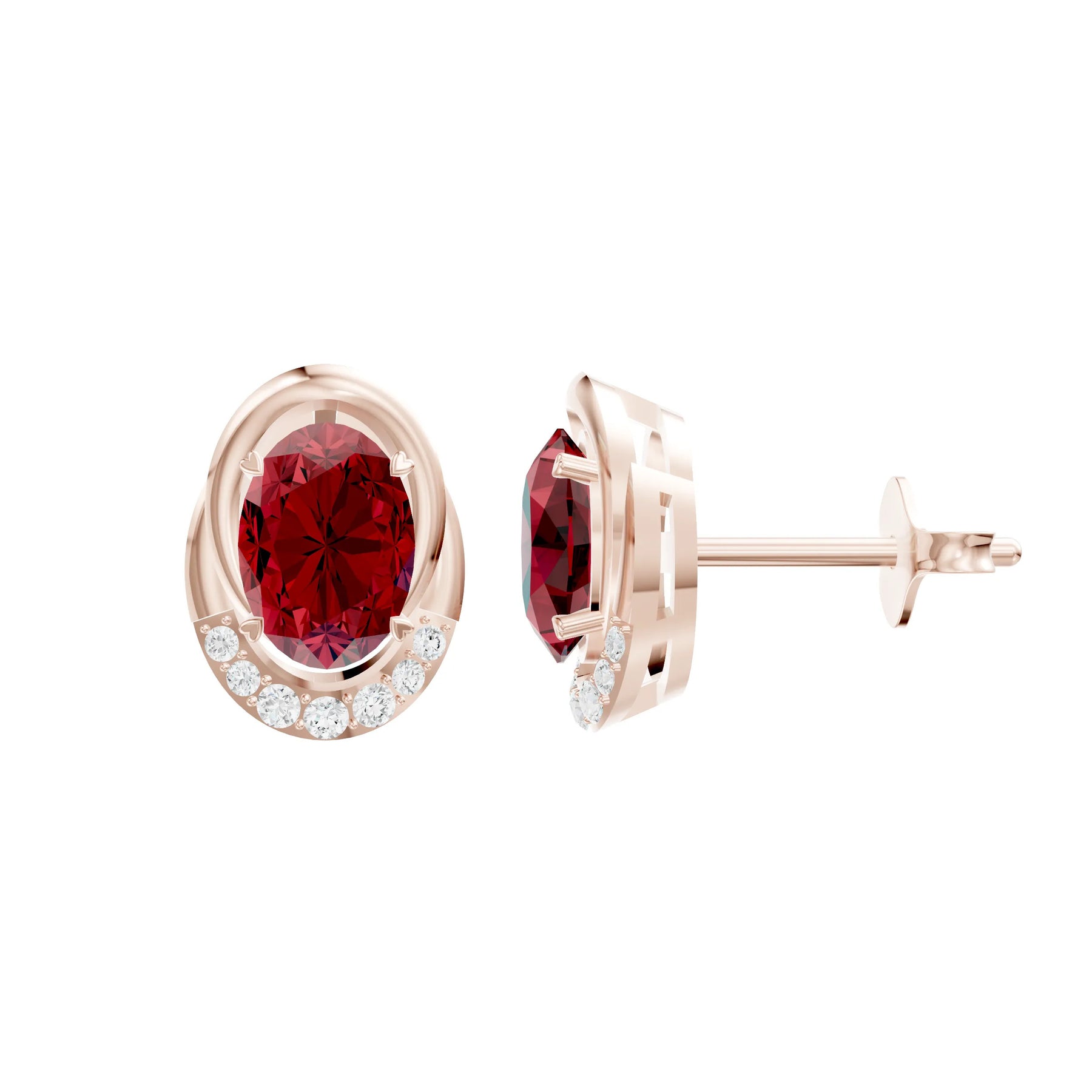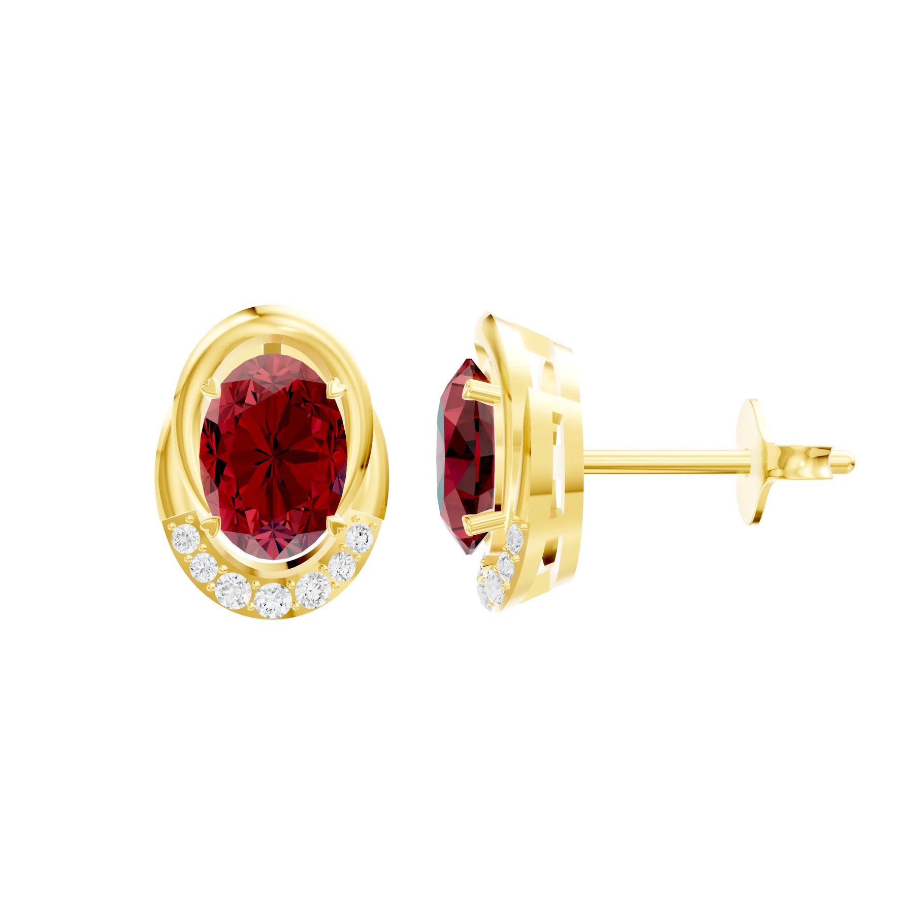 Ruby Oval Earrings with Diamond Accents - 7x5mm