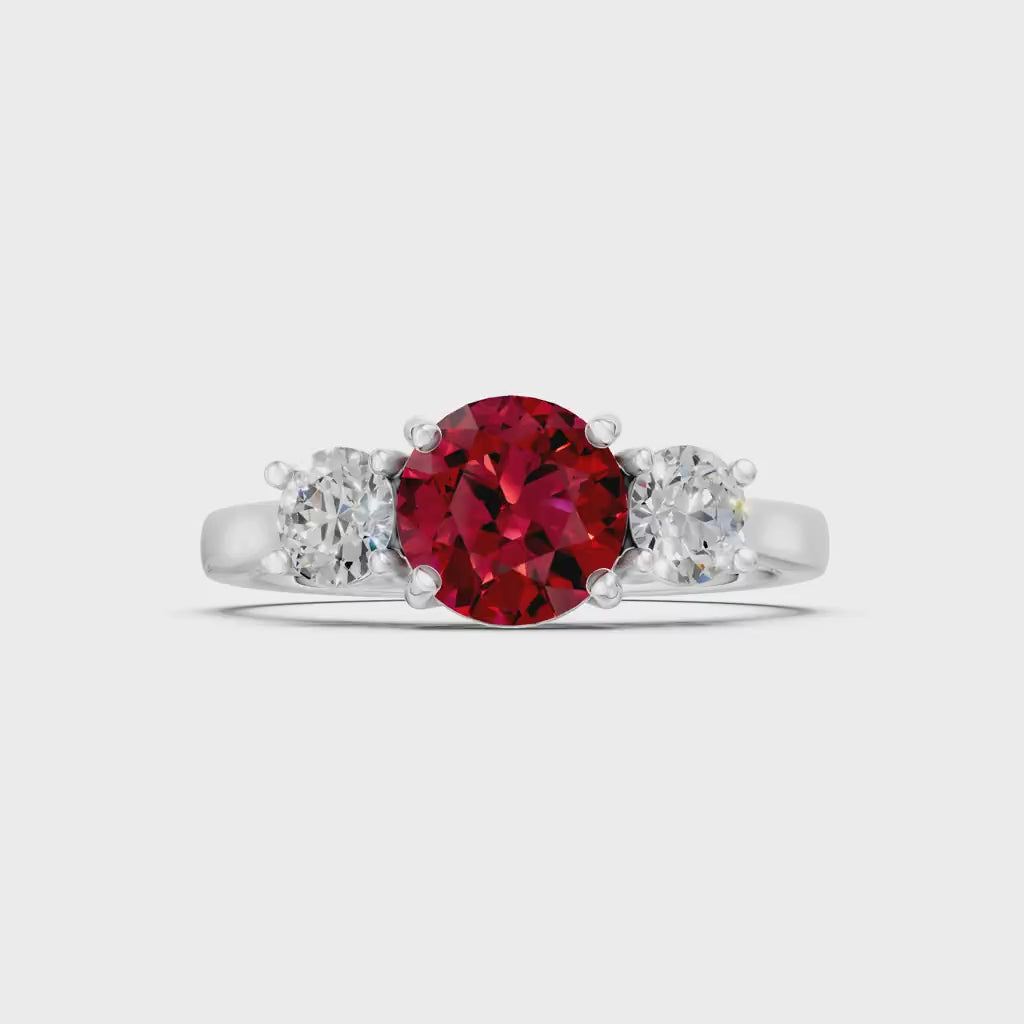 Ruby Three Round Cut Stone Ring