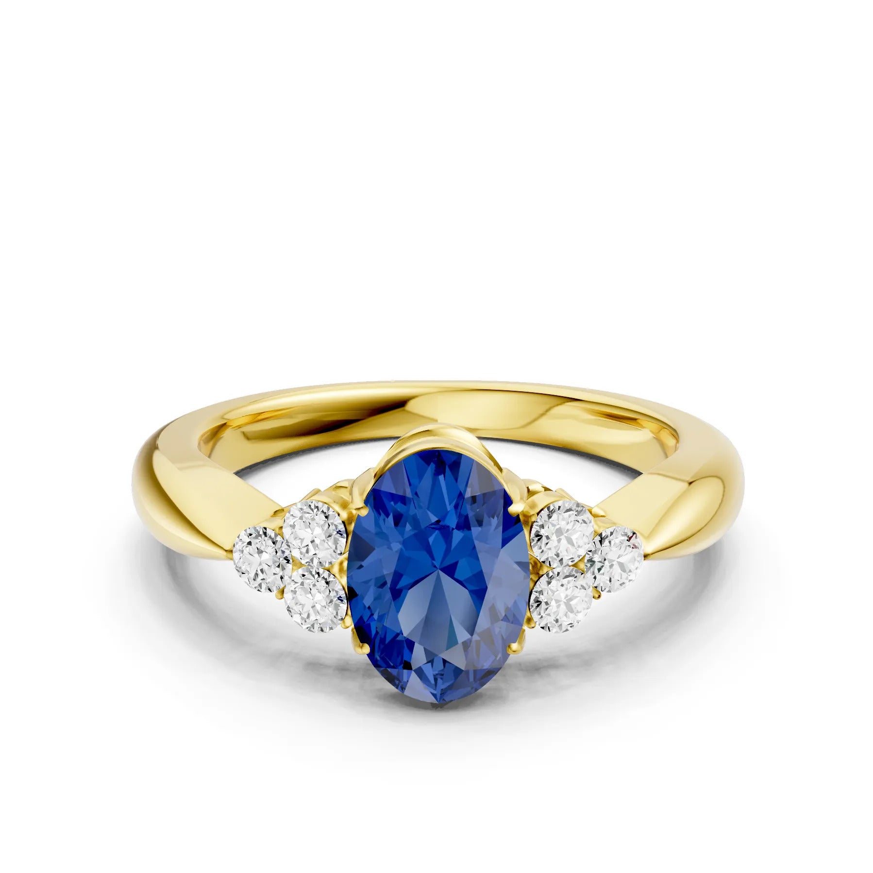 Blue Sapphire Antique Inspired Design Oval Cut Engagement Ring