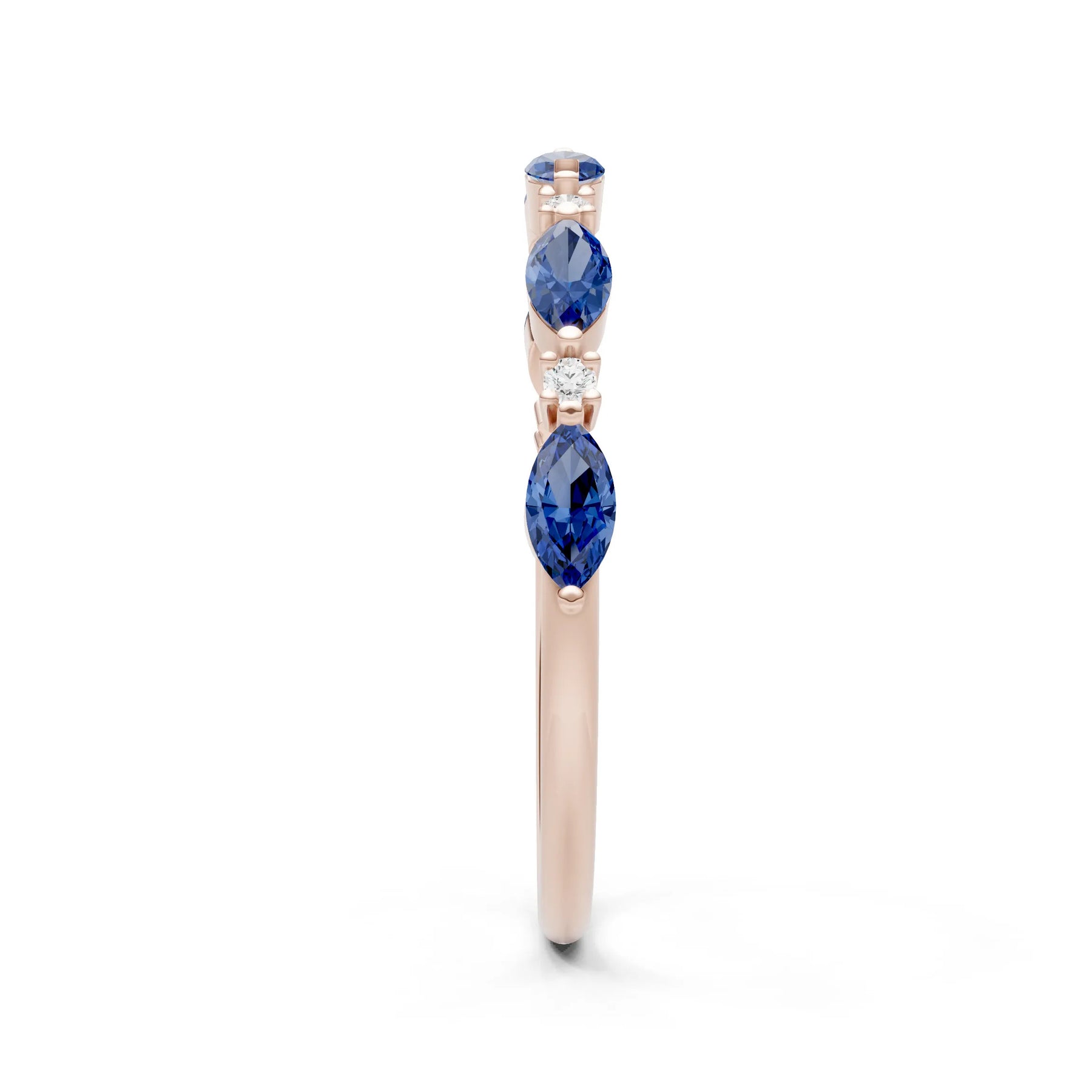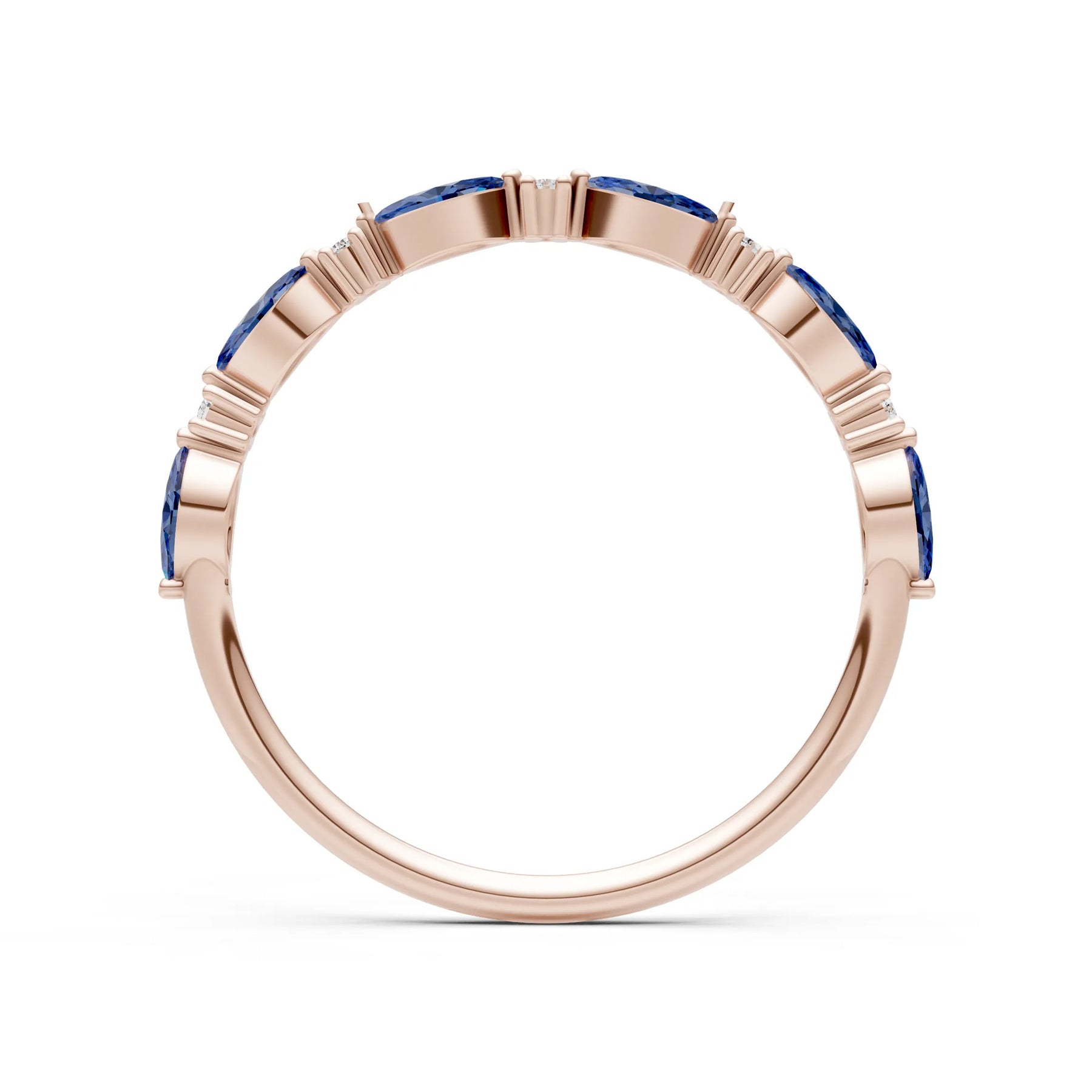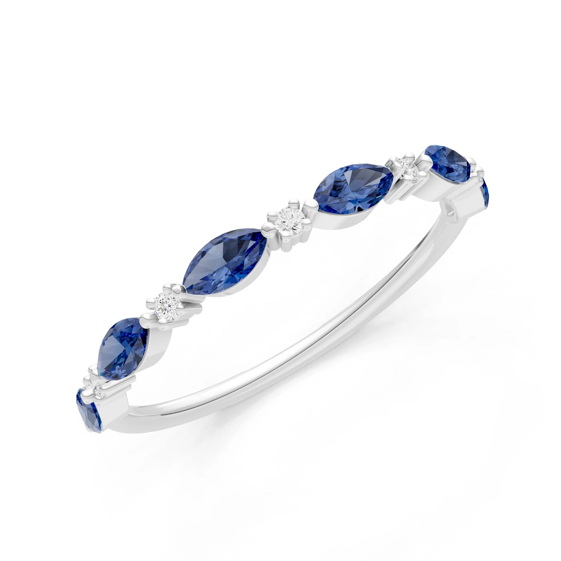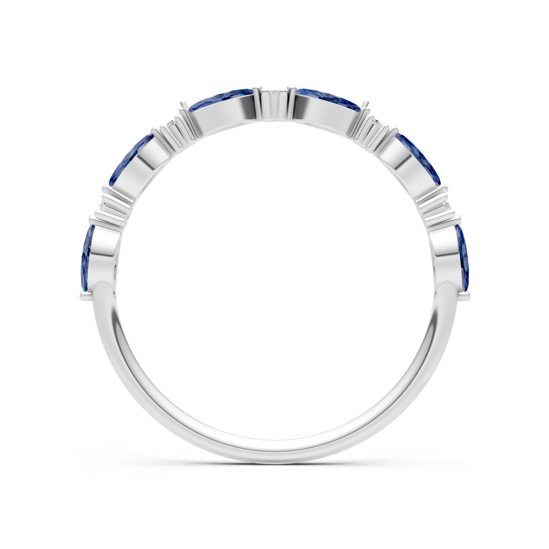 Blue Sapphire Dainty Alternating Prong Station Marquise & Round Half Band