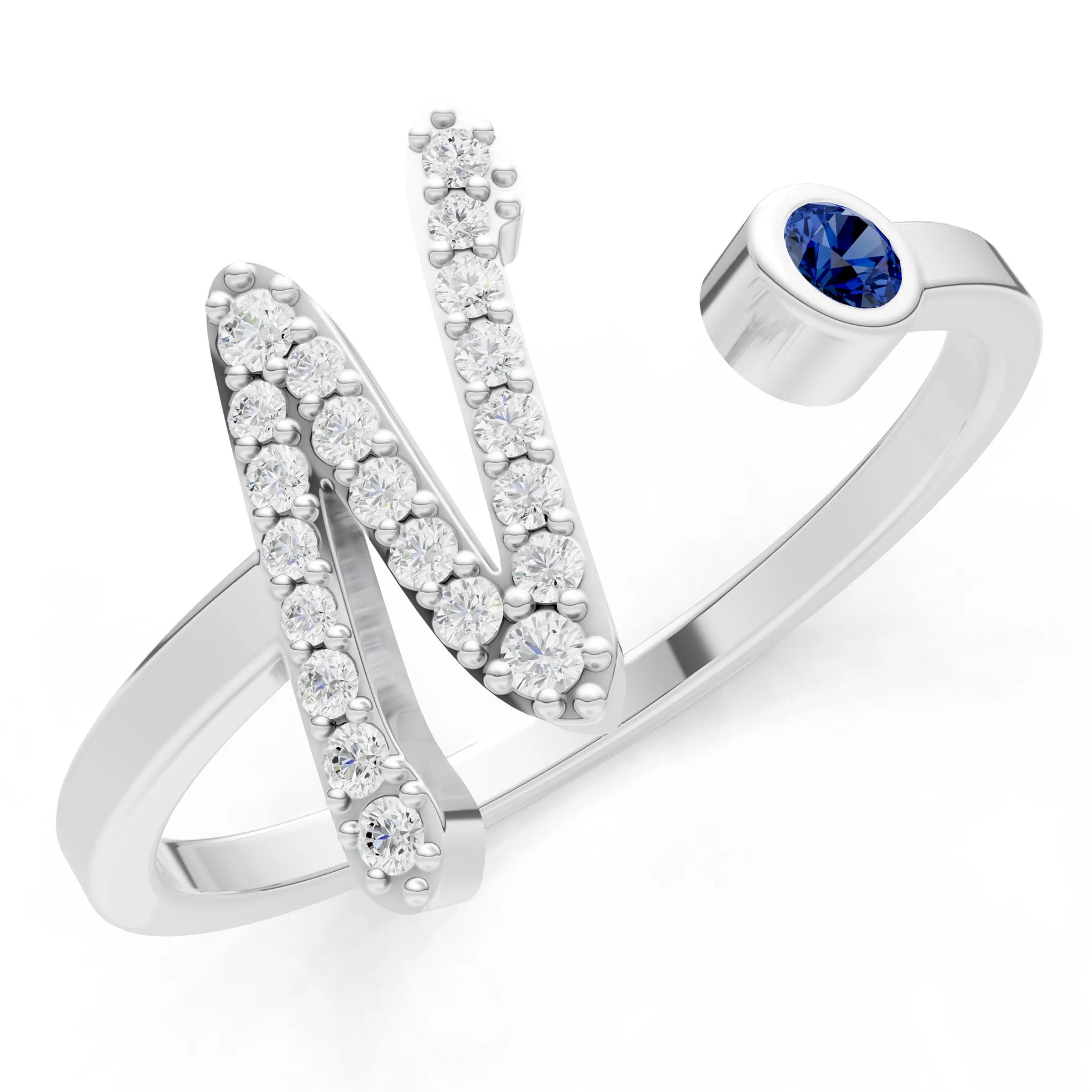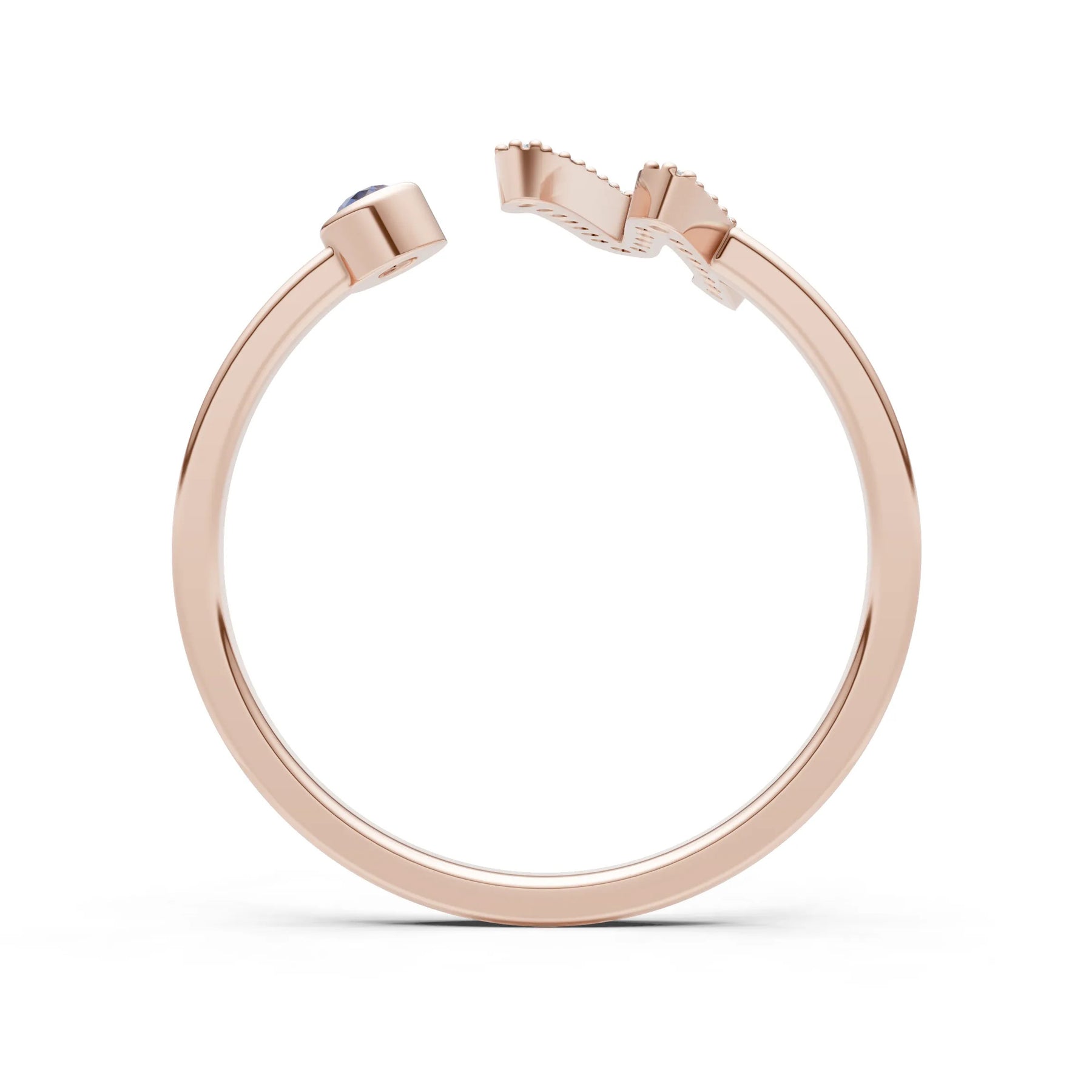 Blue Sapphire Dainty Initial Letter Birthstone Open Ring – N
