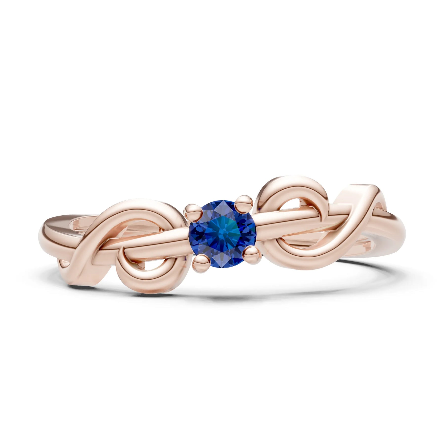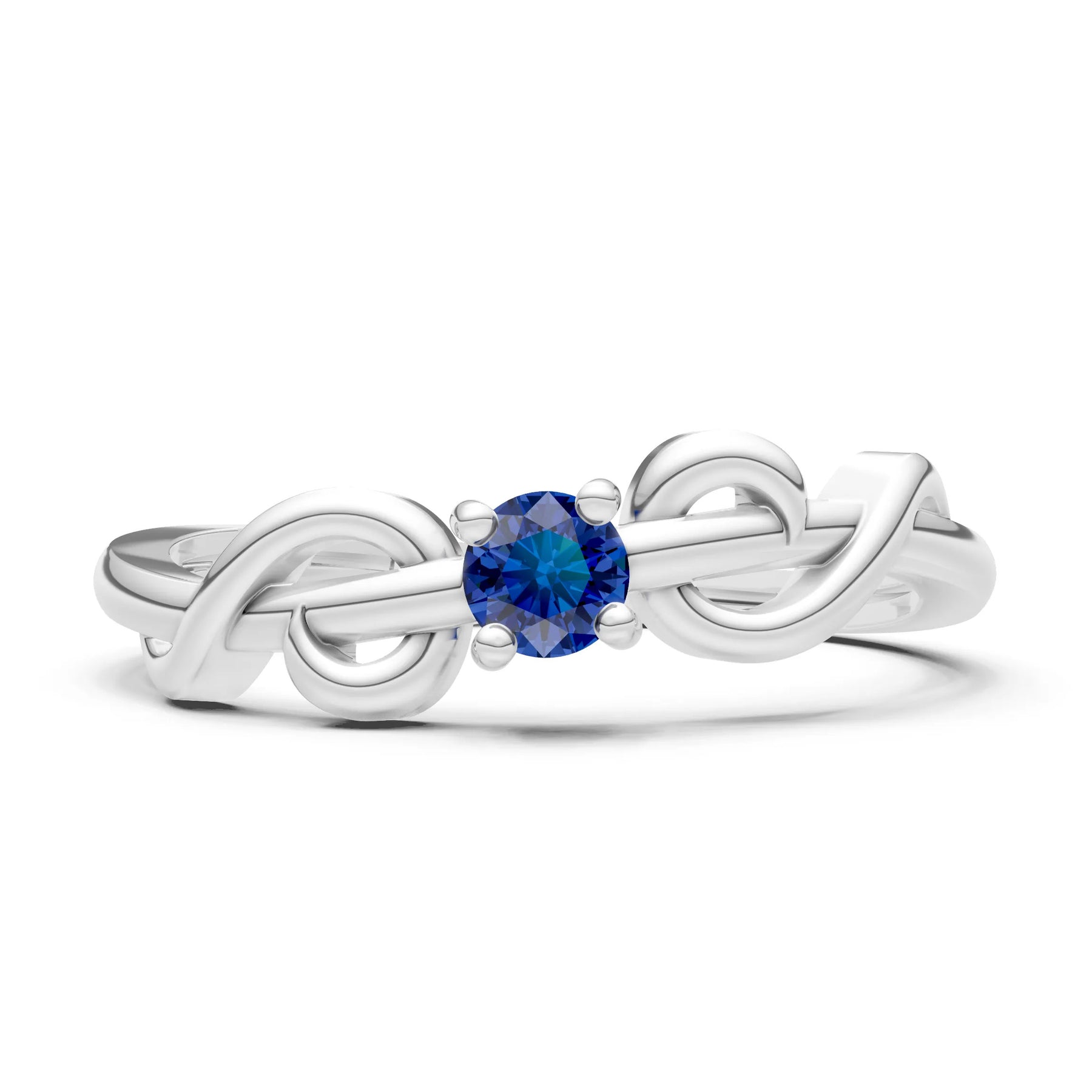 Blue Sapphire Double Knot Tiny Solitaire Andromeda Twist Ring - Round