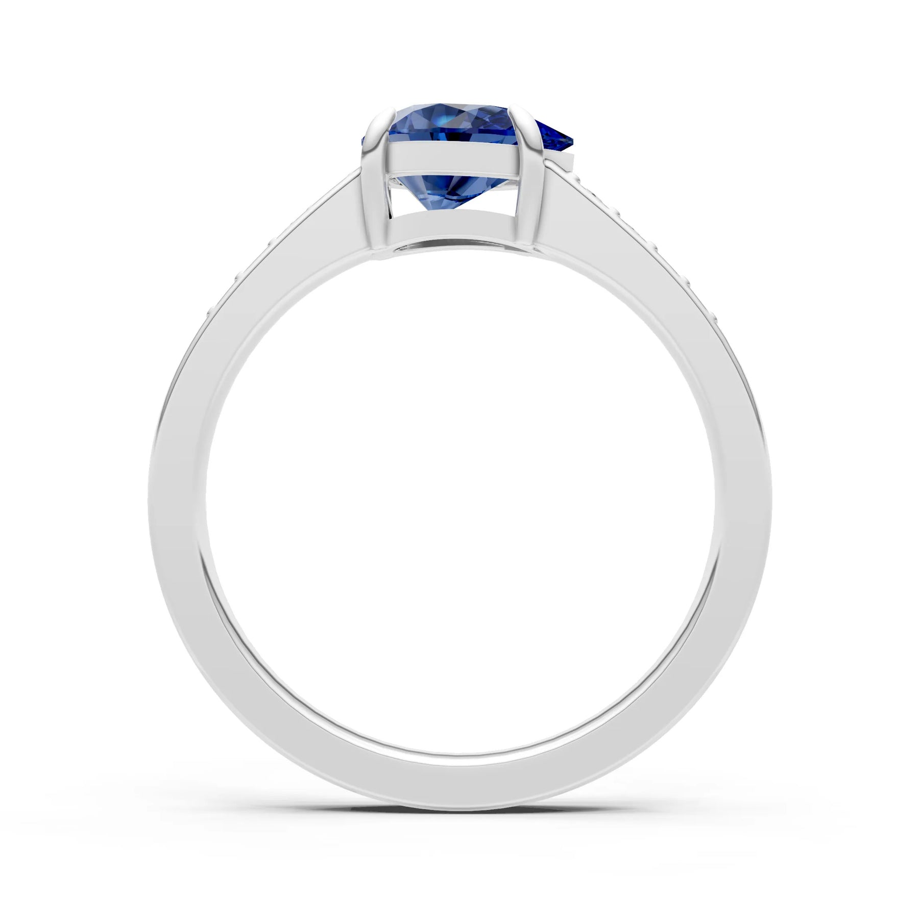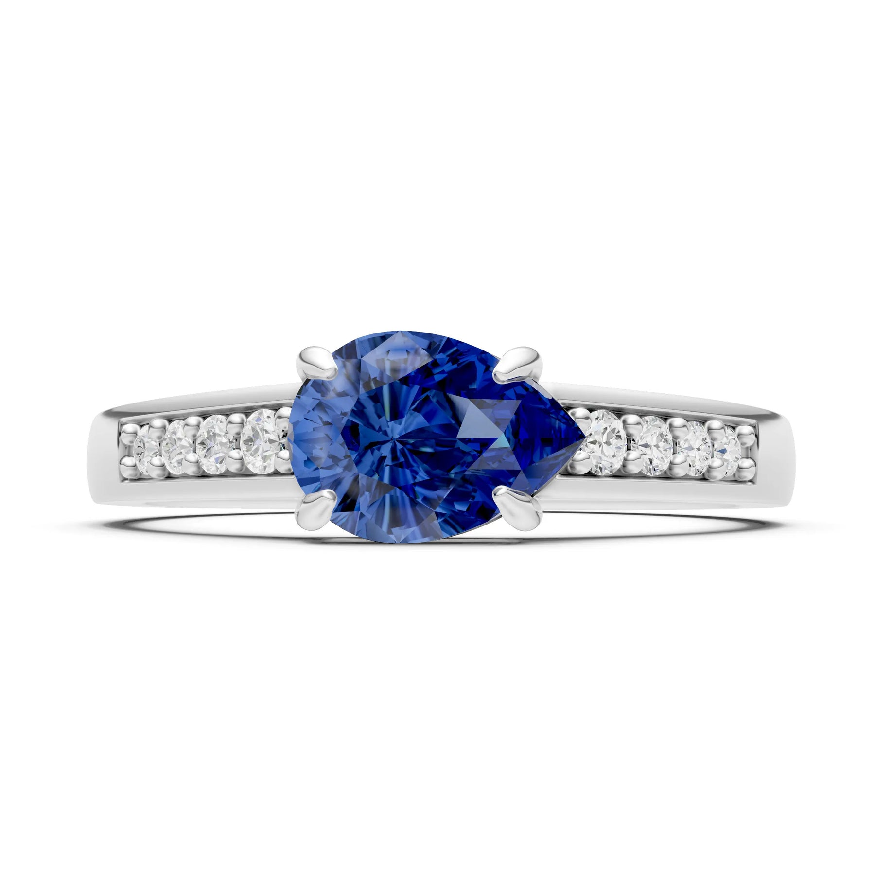 Blue Sapphire East West Pear Gemstone Ring with Accents
