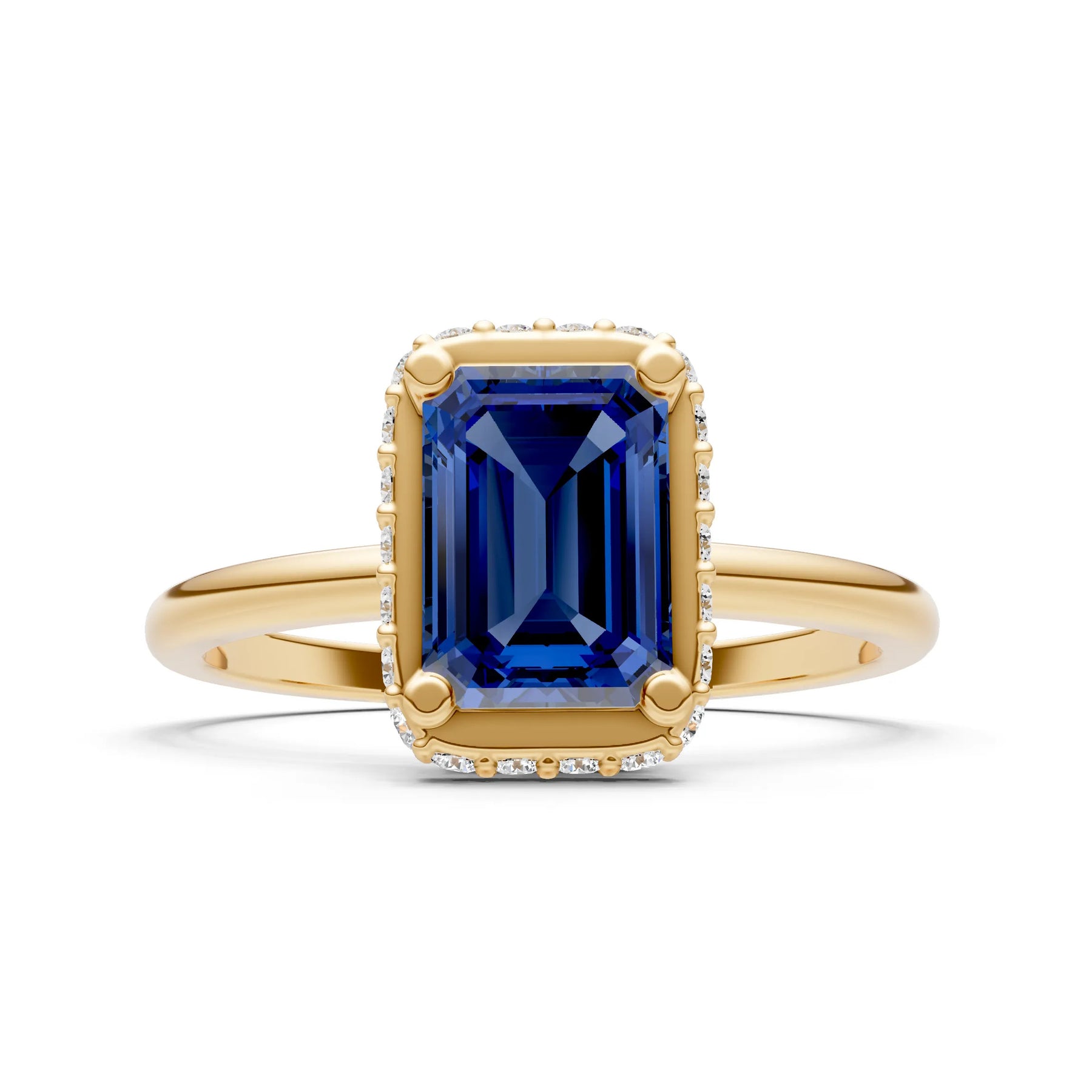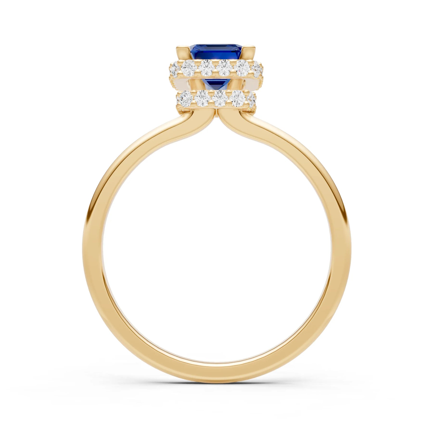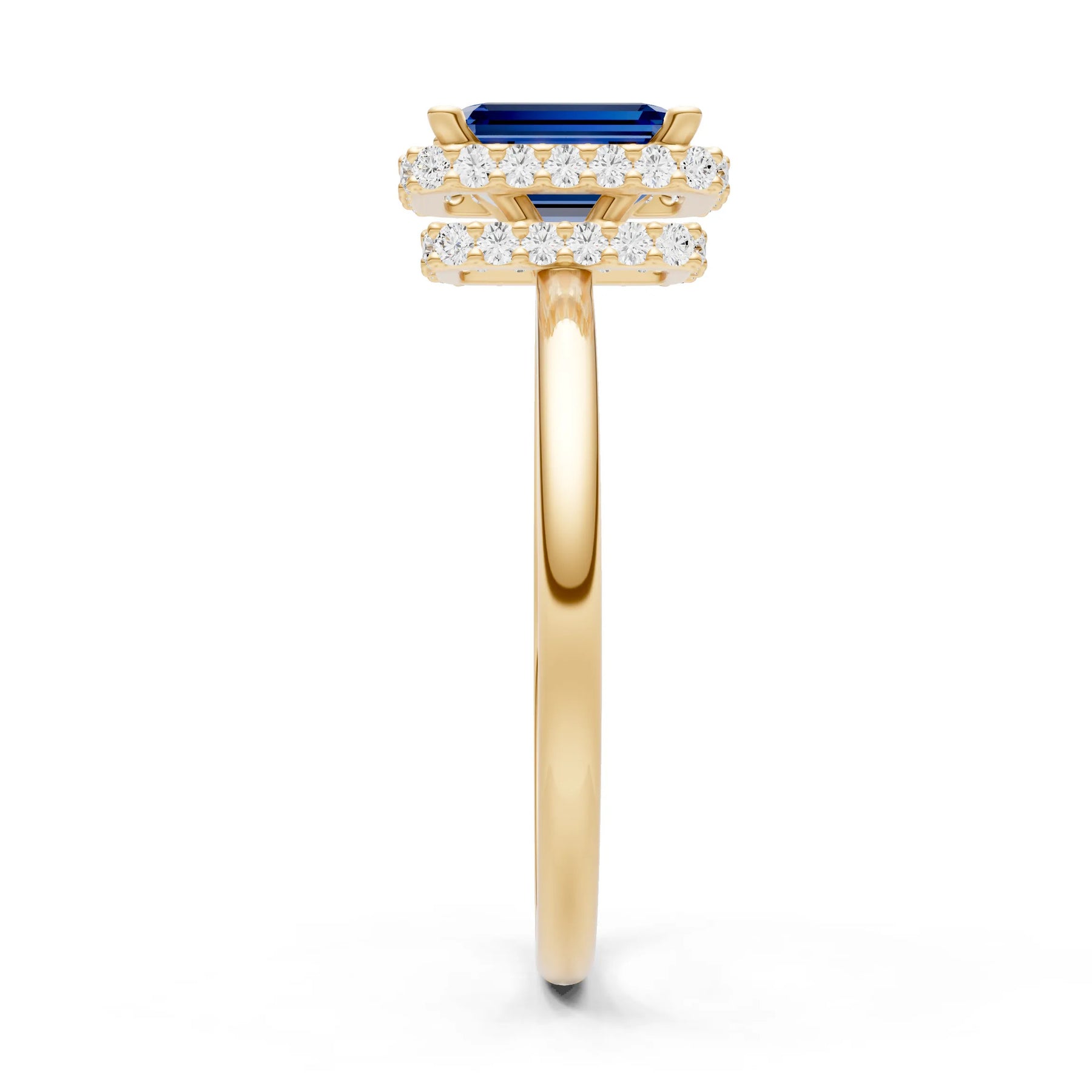 Blue Sapphire Emerald Hidden Double Halo Engagement Ring