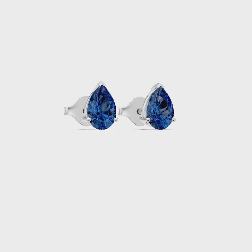 Blue Sapphire Pear Studs Earrings - 6x4mm