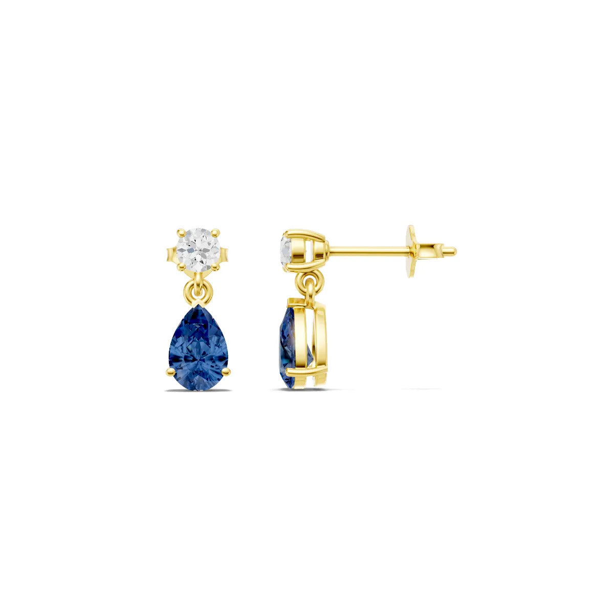 Blue Sapphire Pear with Round Accent - 6x4mm