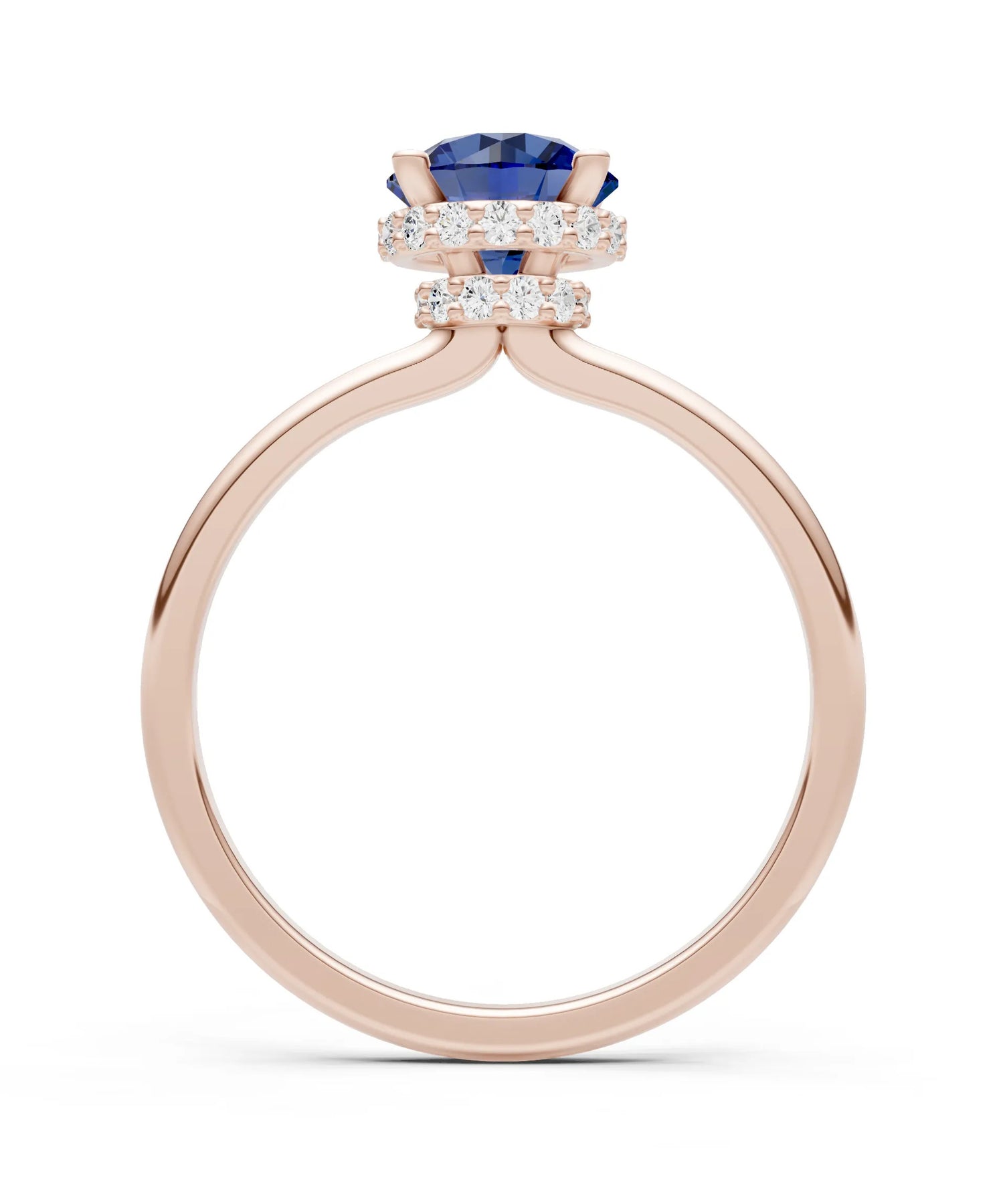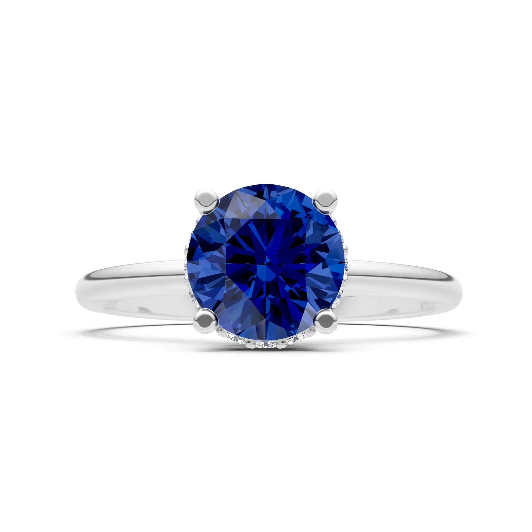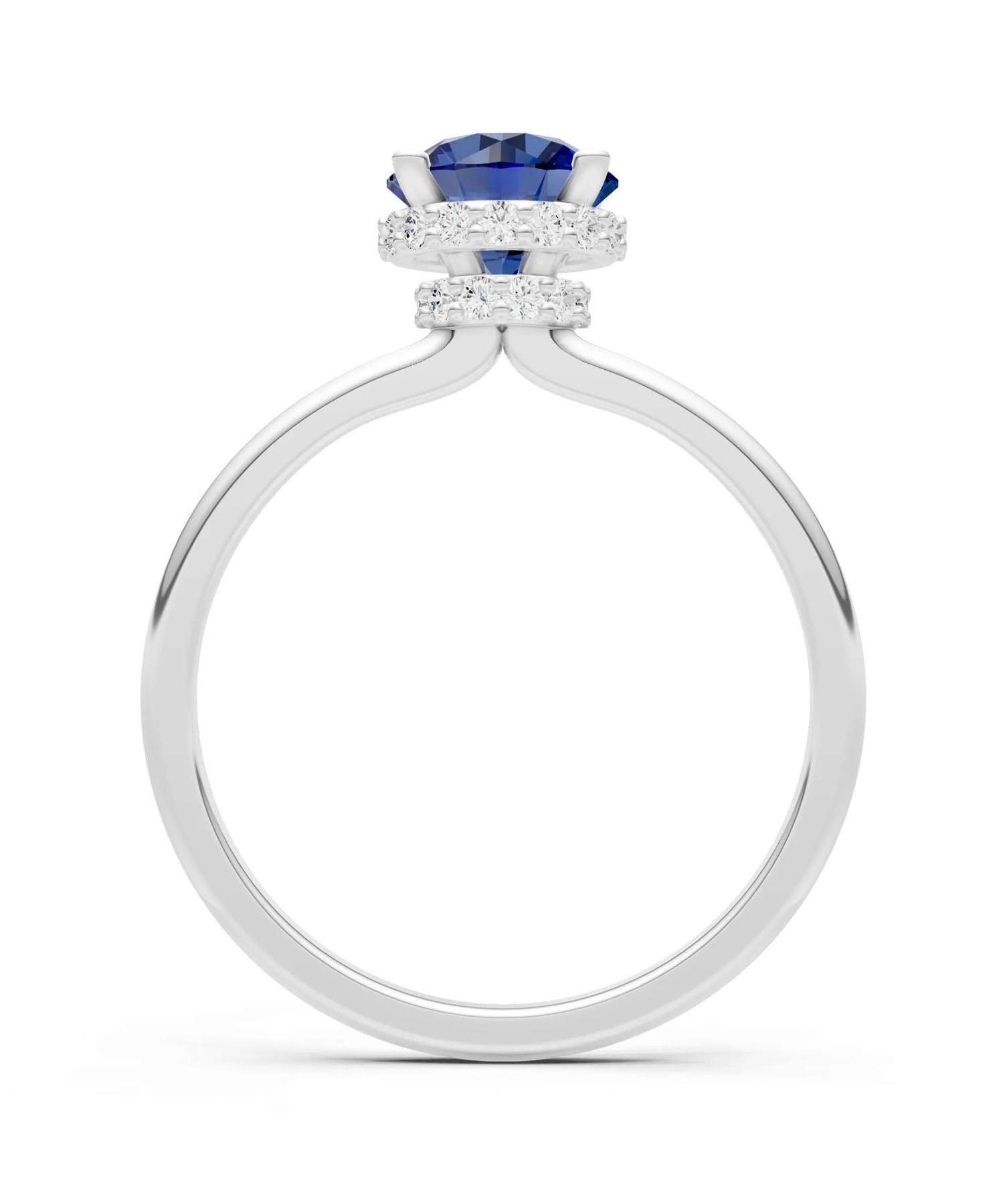 Blue Sapphire Round Shape Hidden Double Halo Engagement Ring