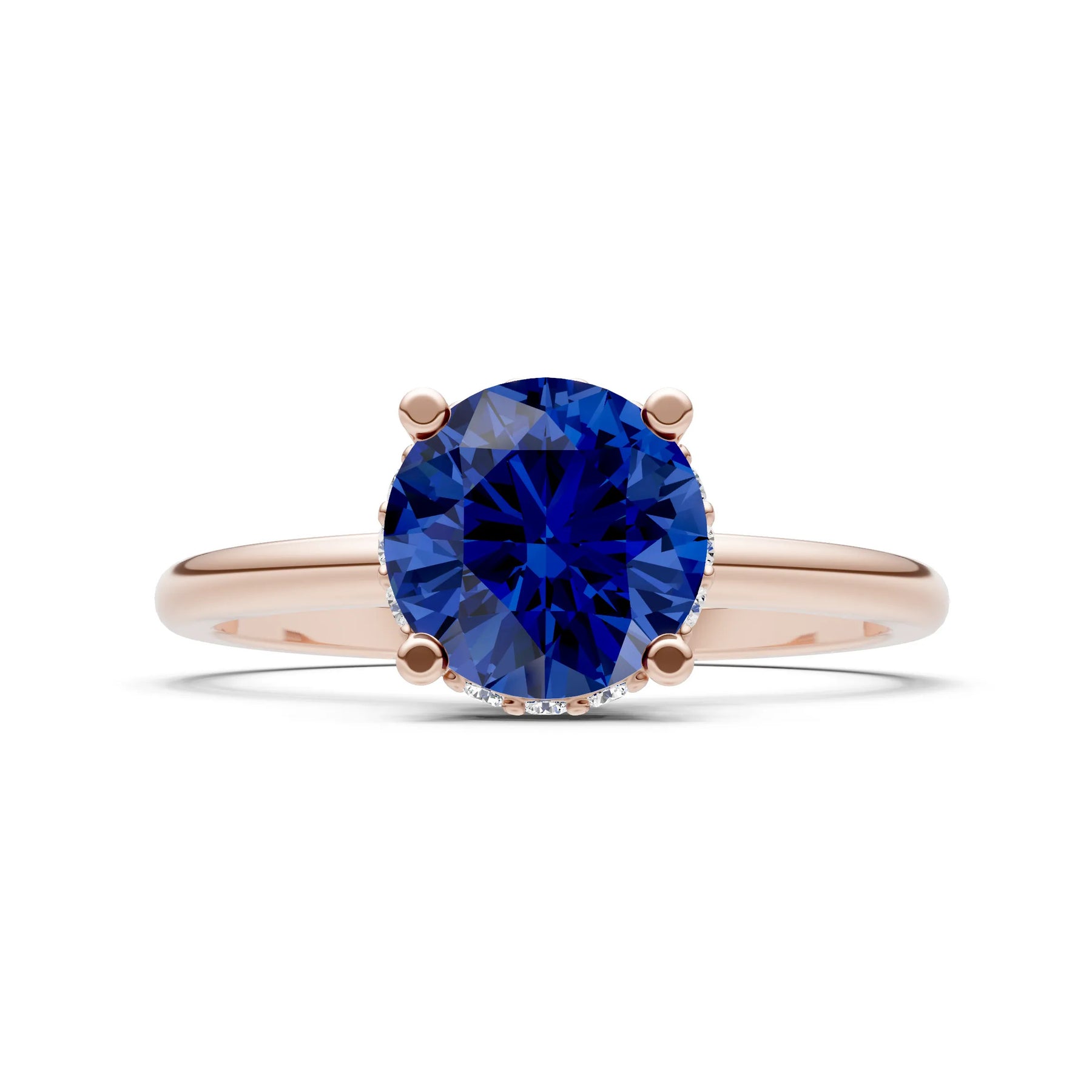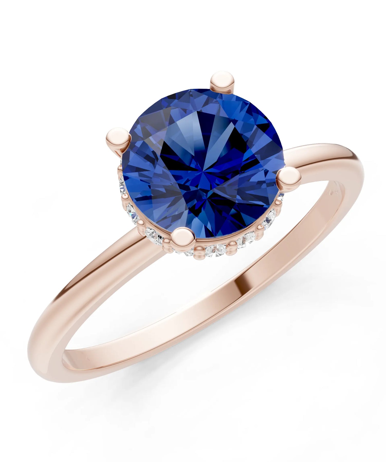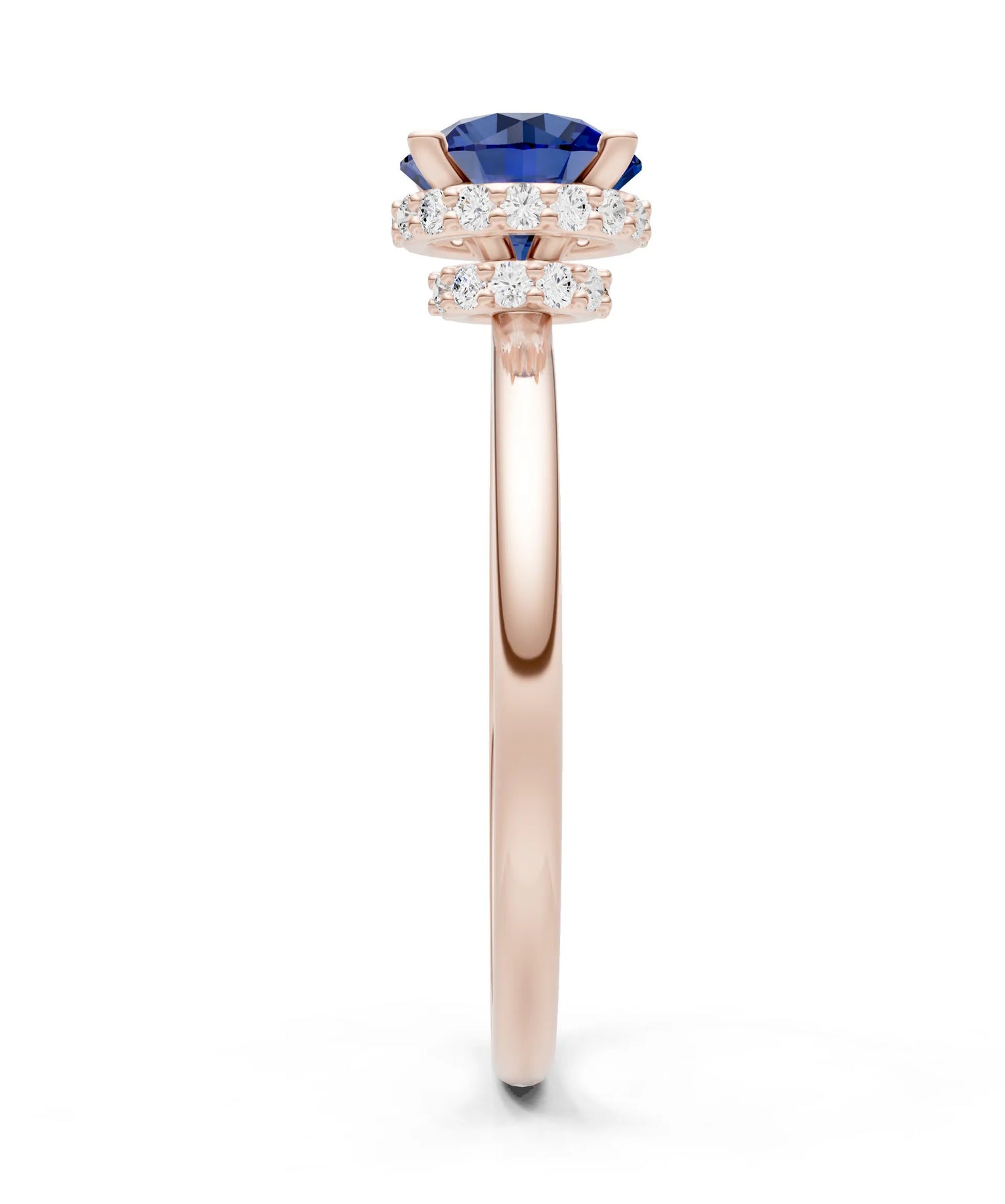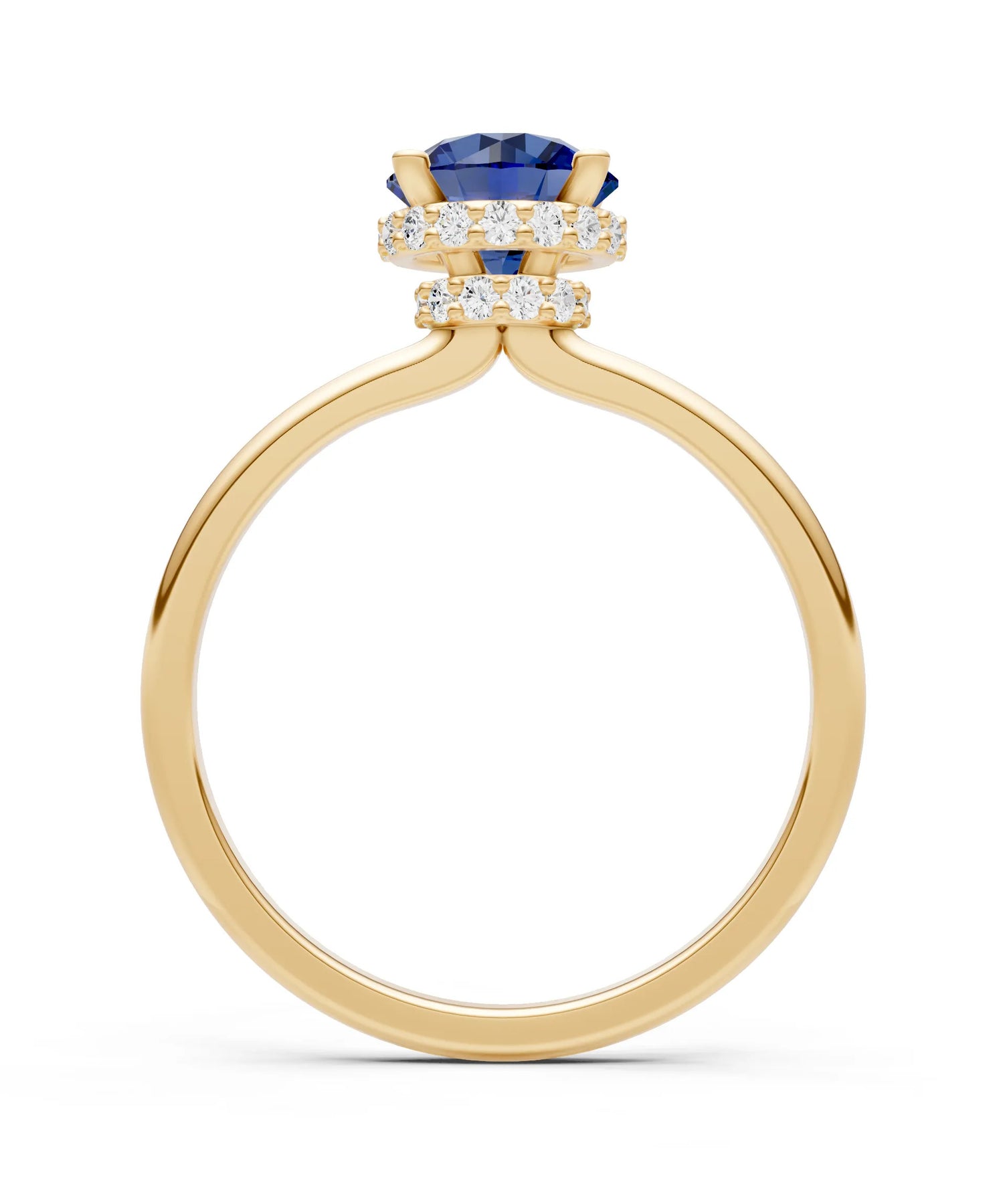 Blue Sapphire Round Shape Hidden Double Halo Engagement Ring
