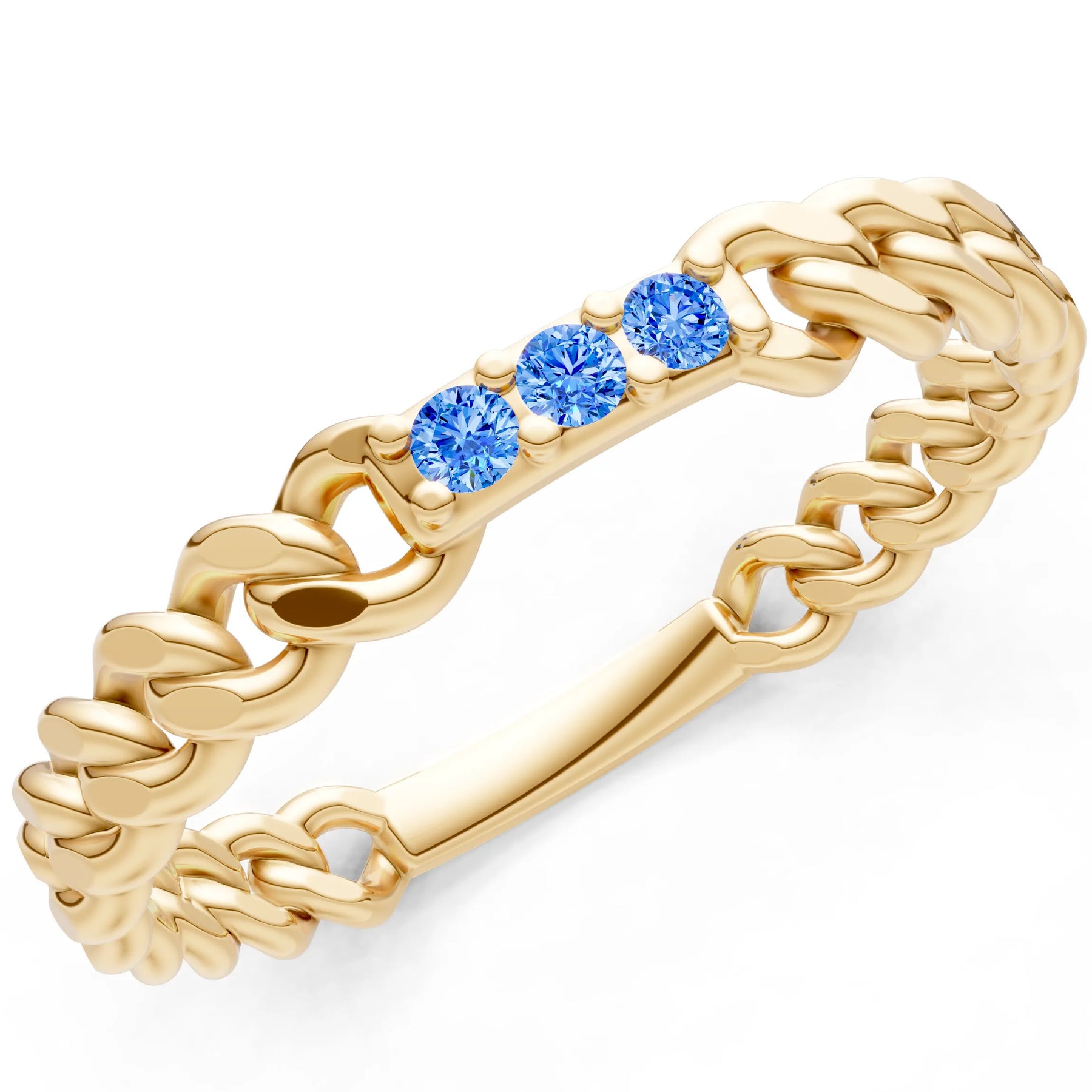 Swiss Blue Topaz Dainty Chain Link 3-Stone Ring