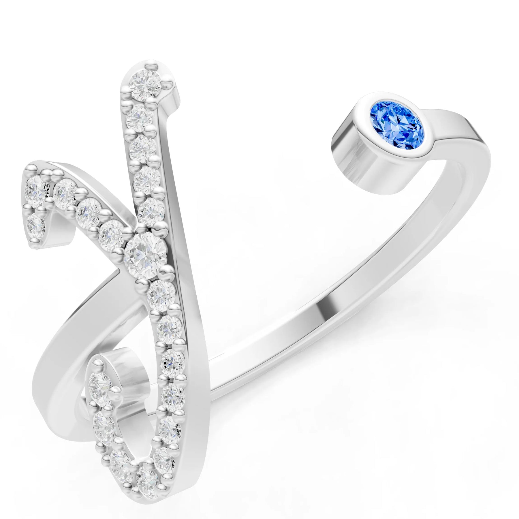 Swiss Blue Topaz Dainty Initial Letter Birthstone Open Ring – Y