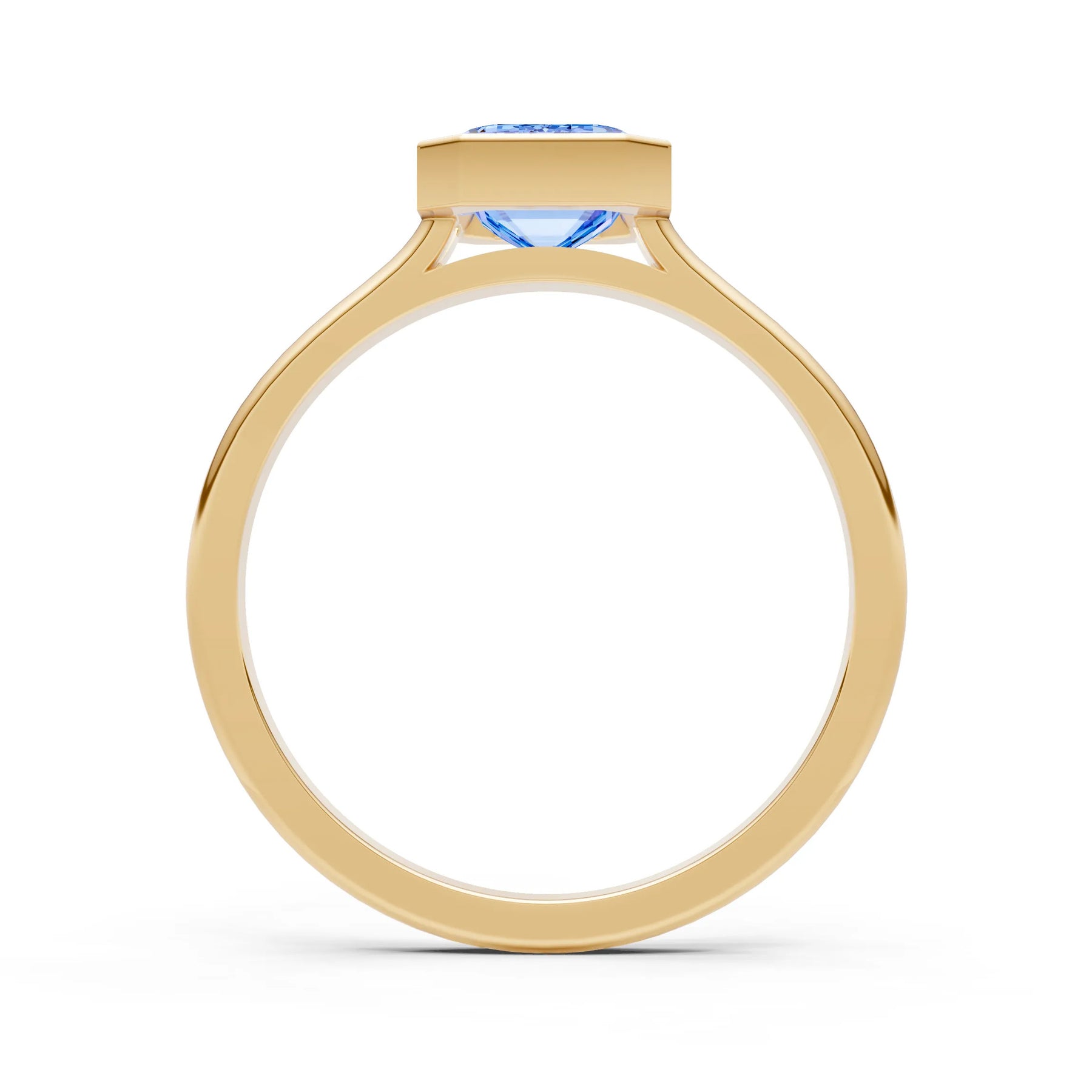 Swiss Blue Topaz Emerald Cut Bezel Set Solitaire Ring