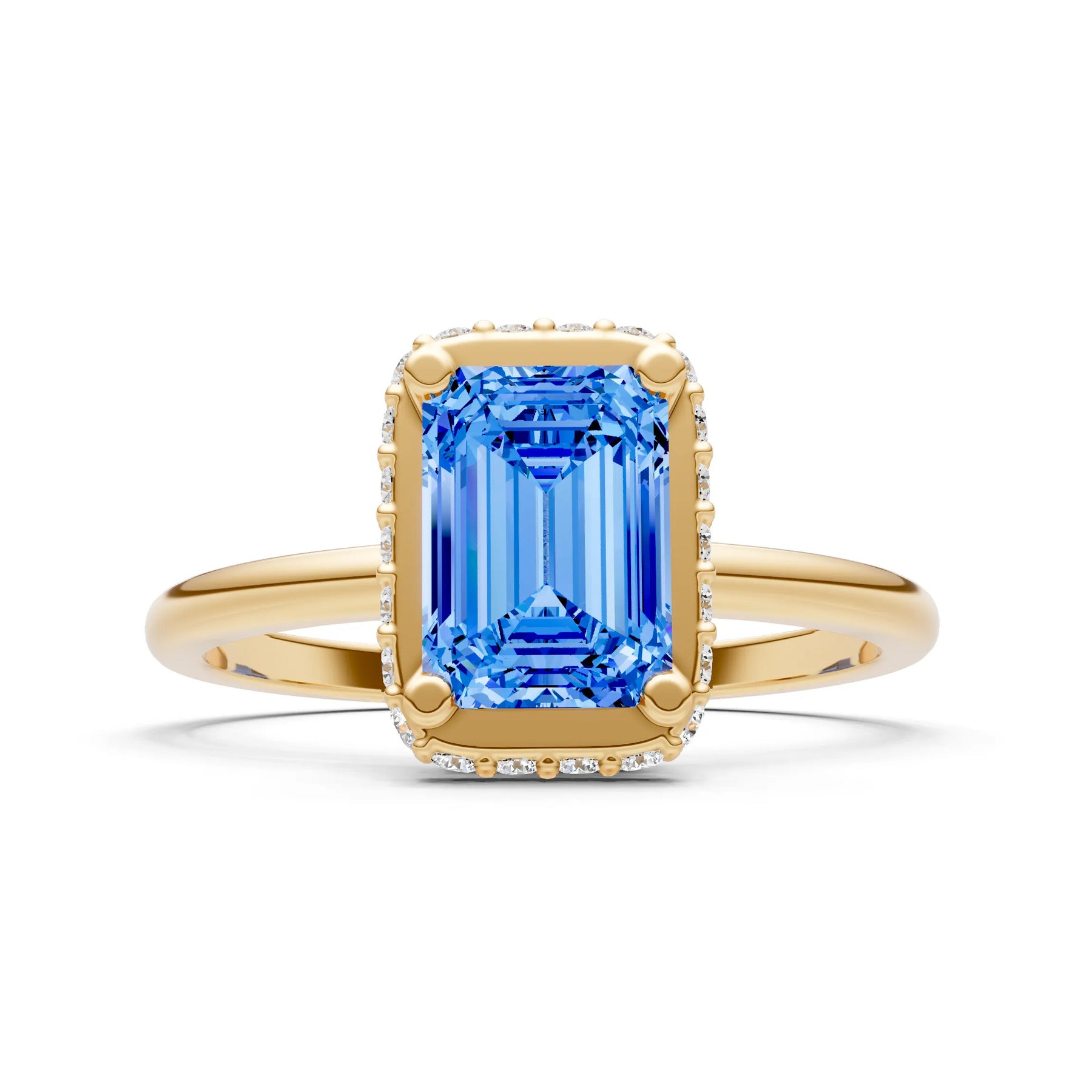 Swiss Blue Topaz Emerald Hidden Double Halo Engagement Ring