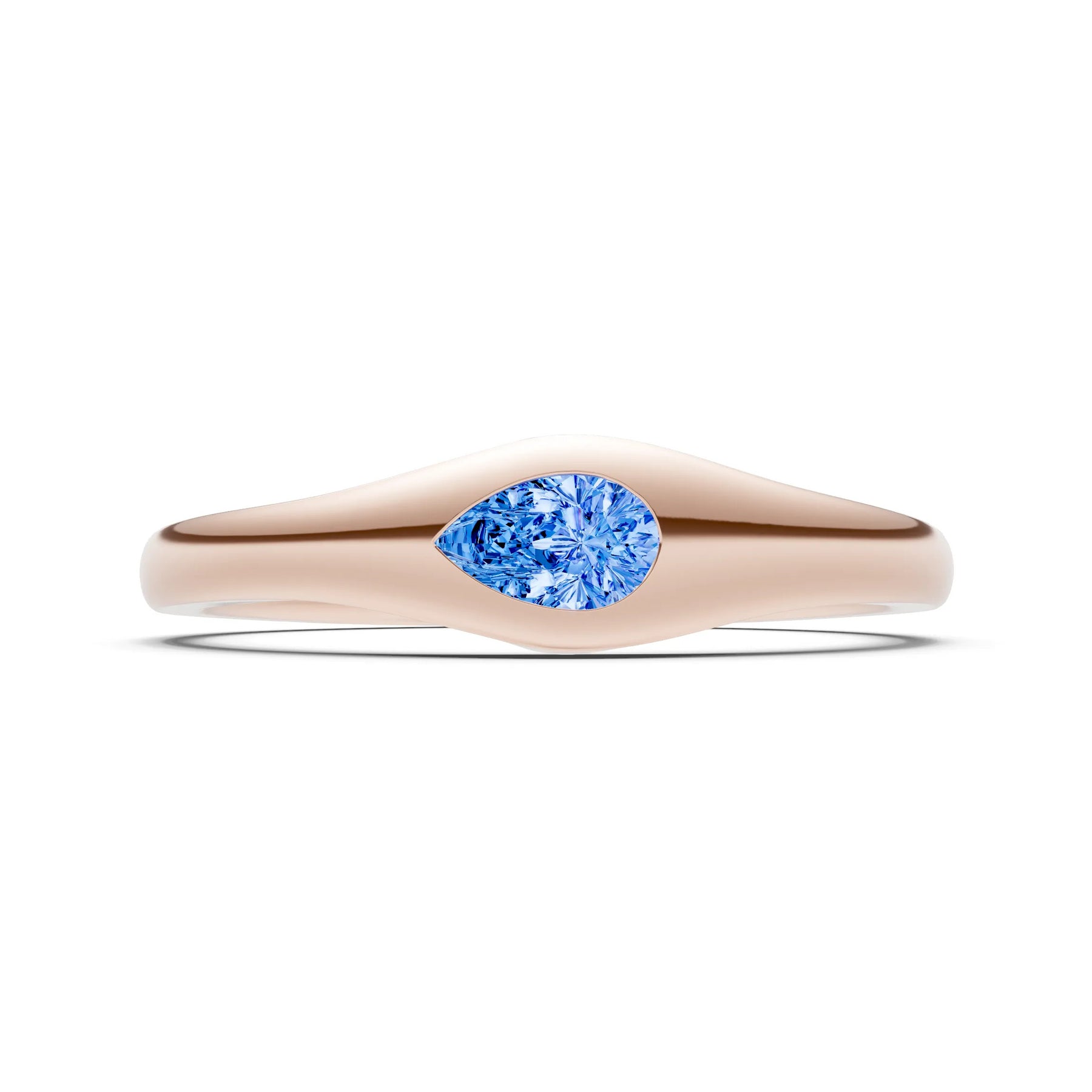 Swiss Blue Topaz Flush-Set Pear Gemstone Mini Signet Ring
