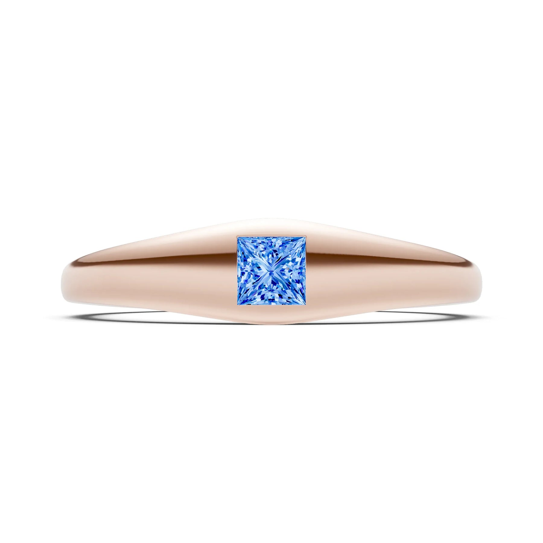 Swiss Blue Topaz Flush-Set Princess Cut Gemstone Mini Signet Ring
