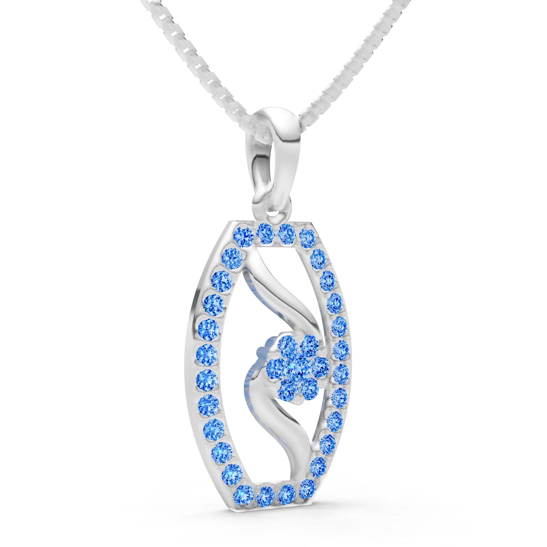 Swiss Blue Topaz Lozenge Florette Wreath Radiance Pendant