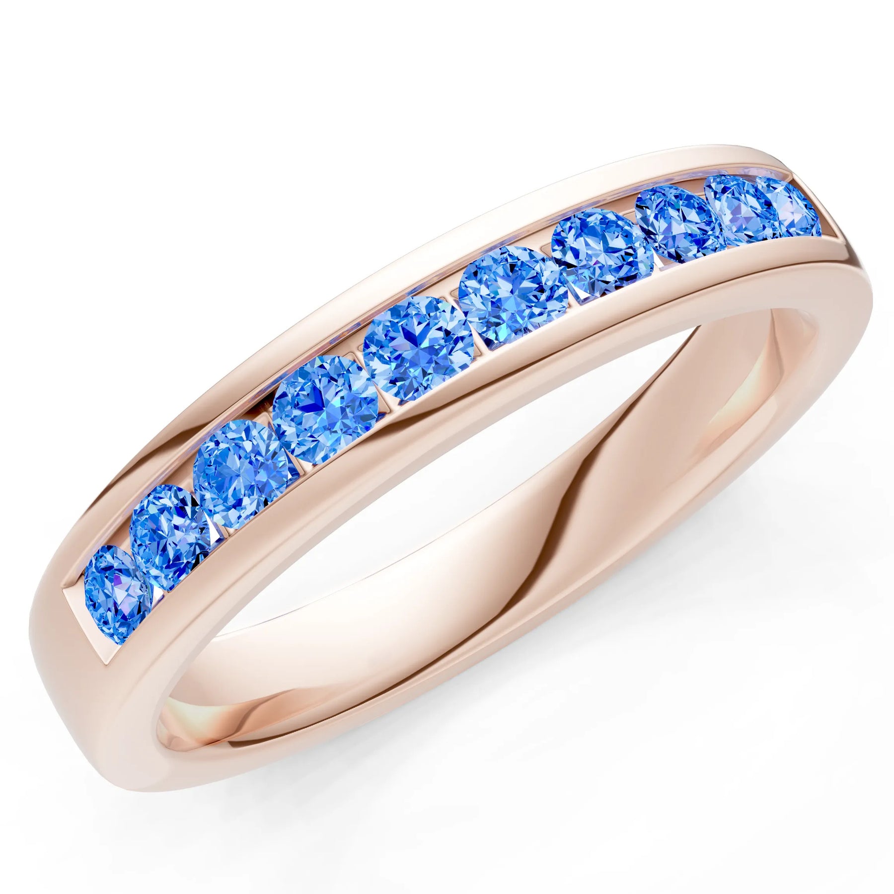 Swiss Blue Topaz Minimalist Channel Set Round Cut Half Eternity