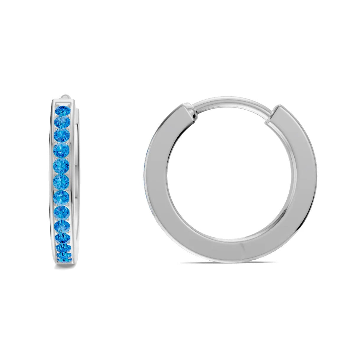 Swiss Blue Topaz Pave Hinged Huggie Hoop Earrings - Mini