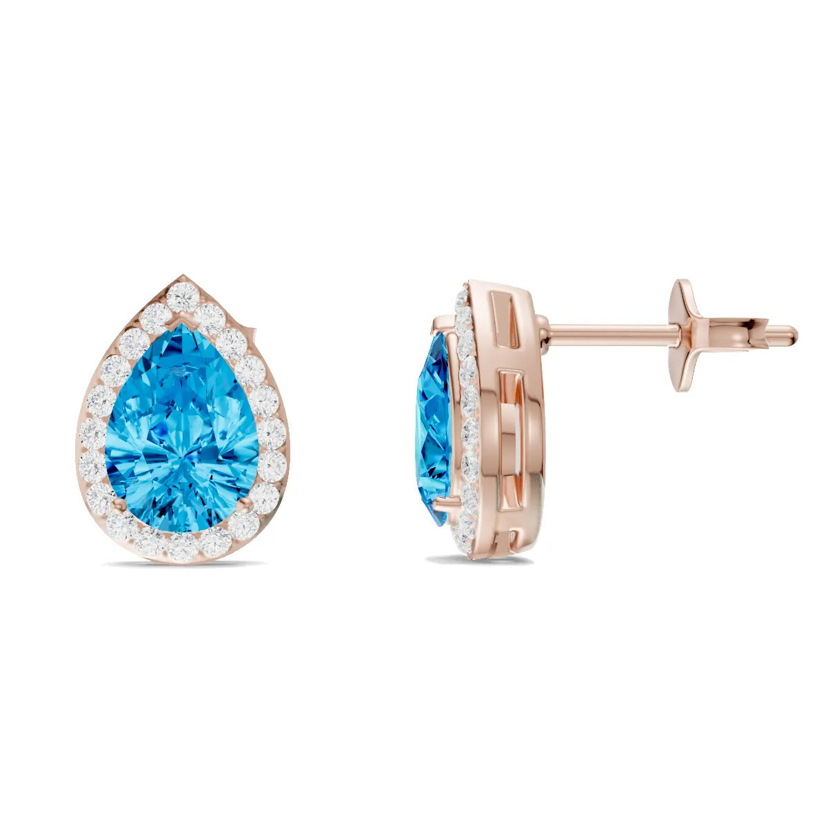 Swiss Blue Topaz Pear Halo Studs Earrings - 7x5mm