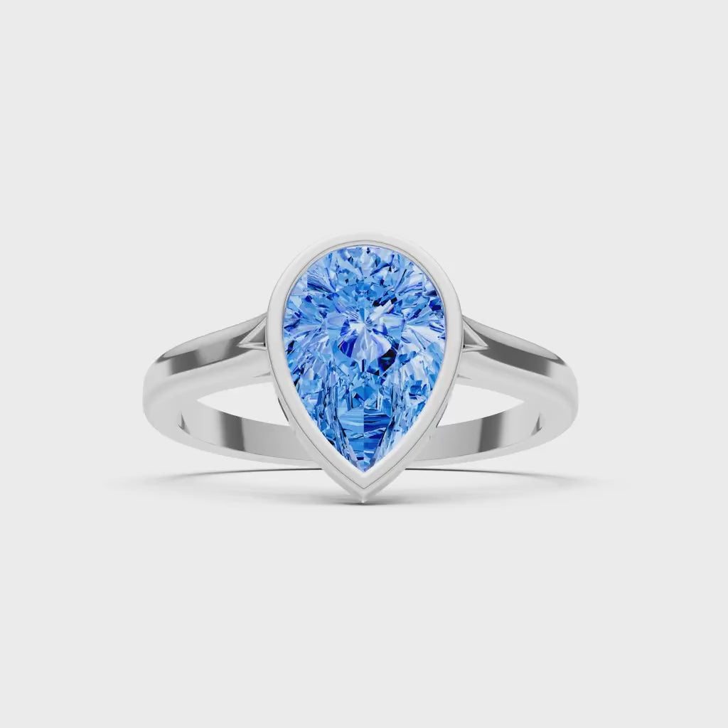 Swiss Blue Topaz Pear Shape Bezel Set Solitaire Ring