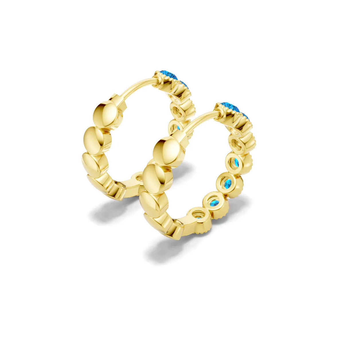 Swiss Blue Topaz Round Bezel Hoop Earrings with Milgrain