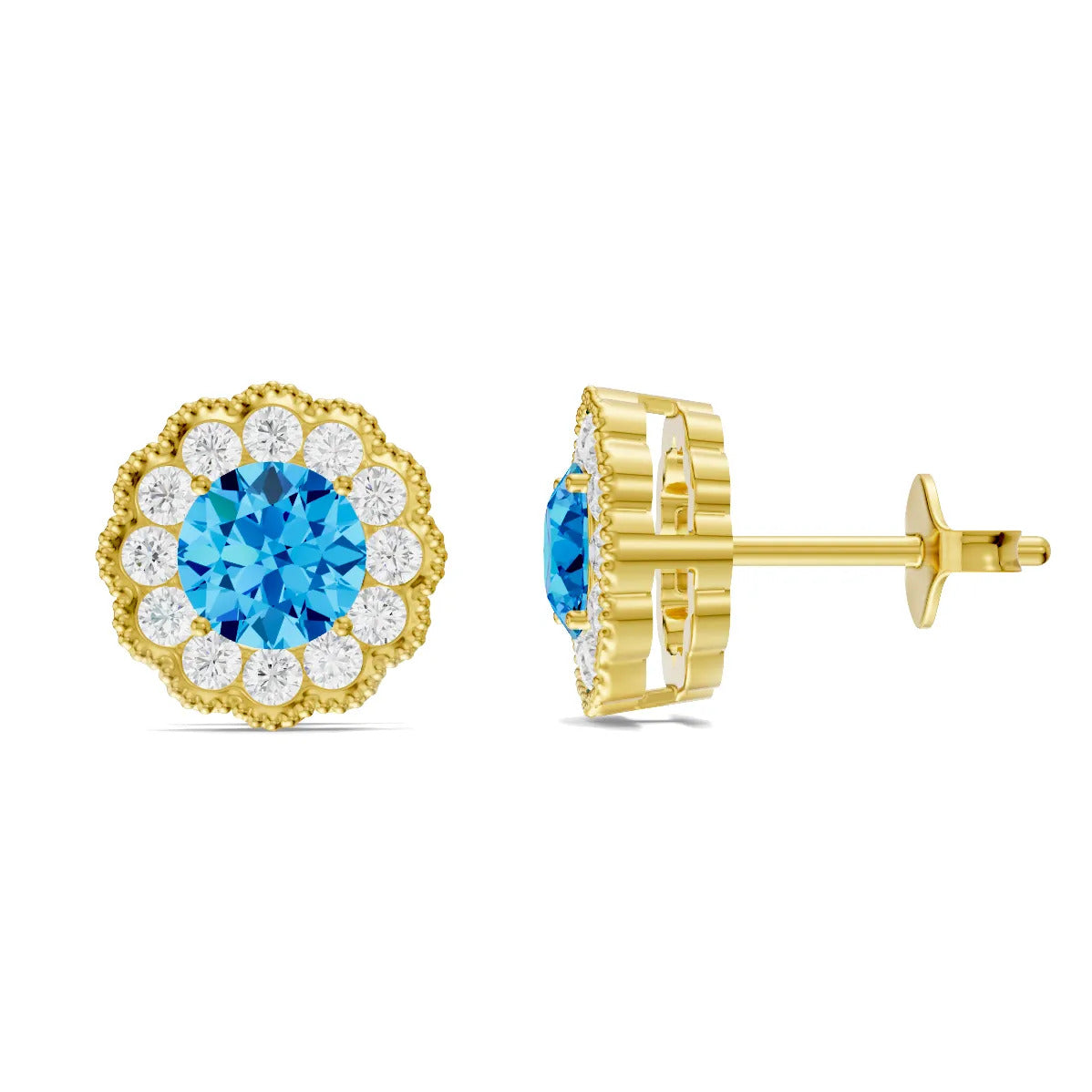 Swiss Blue Topaz Round Floral Halo Earrings - 5mm