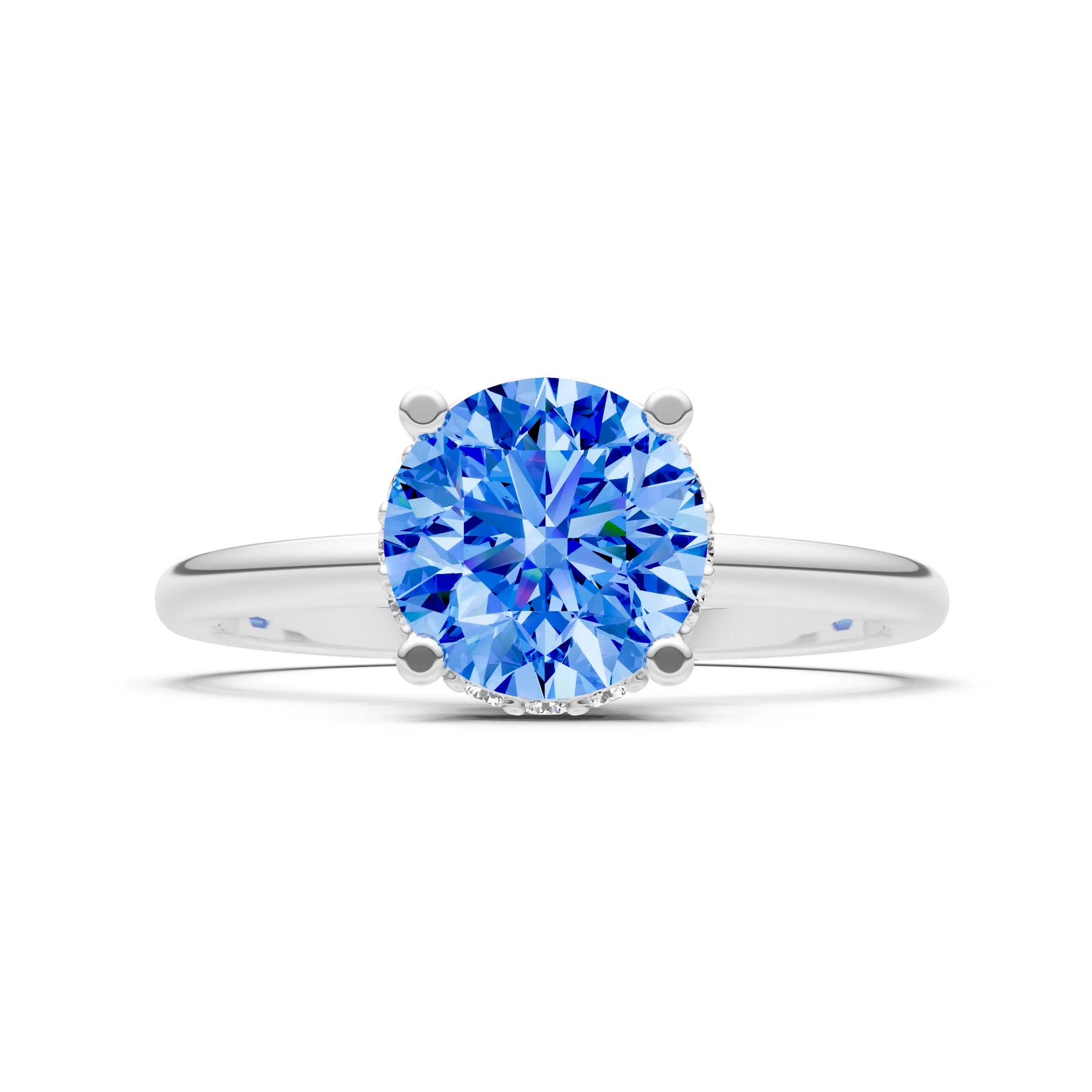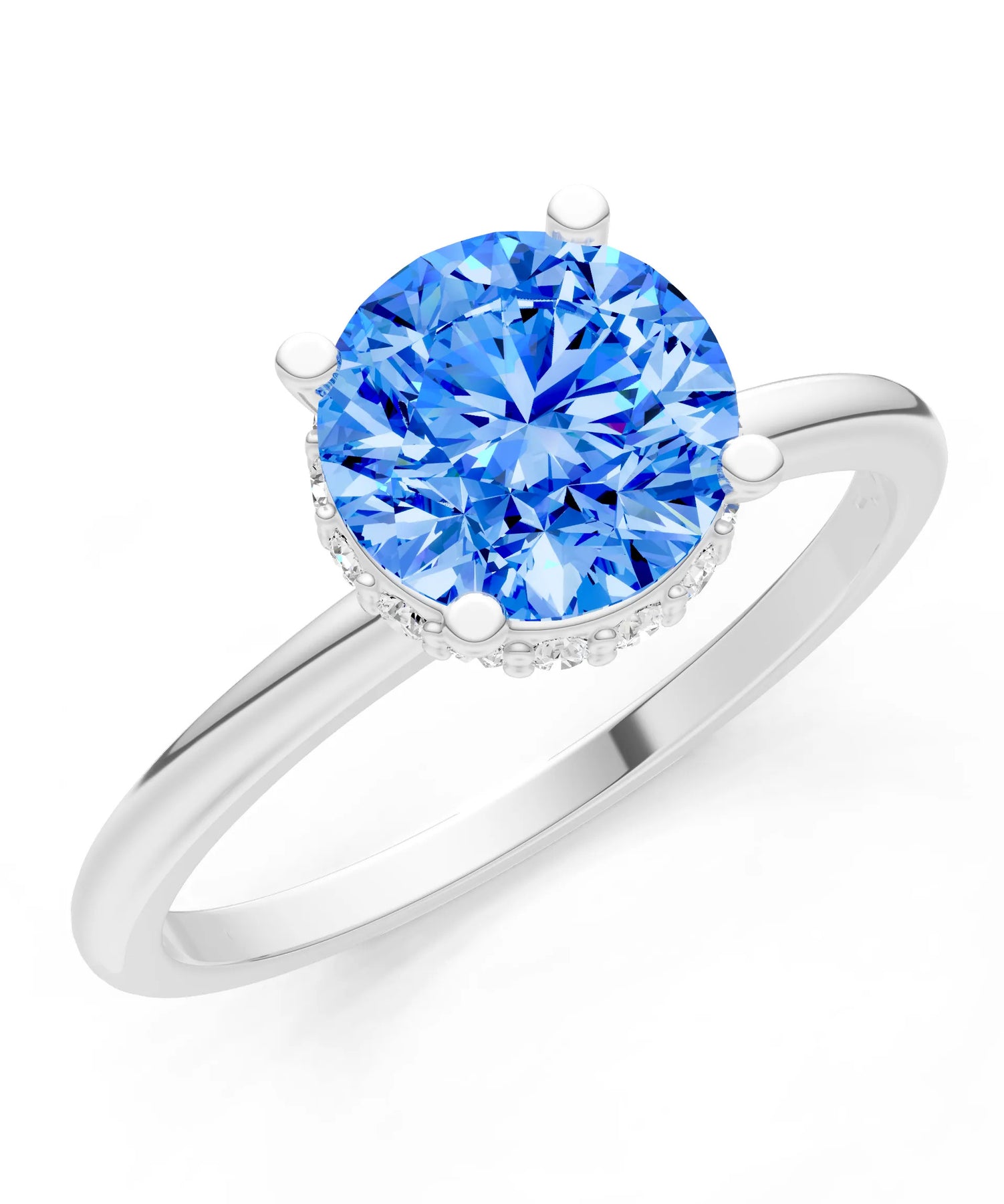 Swiss Blue Topaz Round Shape Hidden Double Halo Engagement Ring