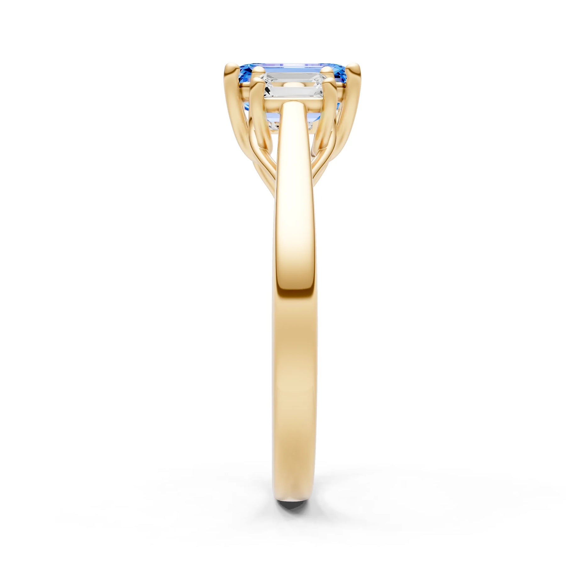 Swiss Blue Topaz Three Emerald Cut Stone Ring