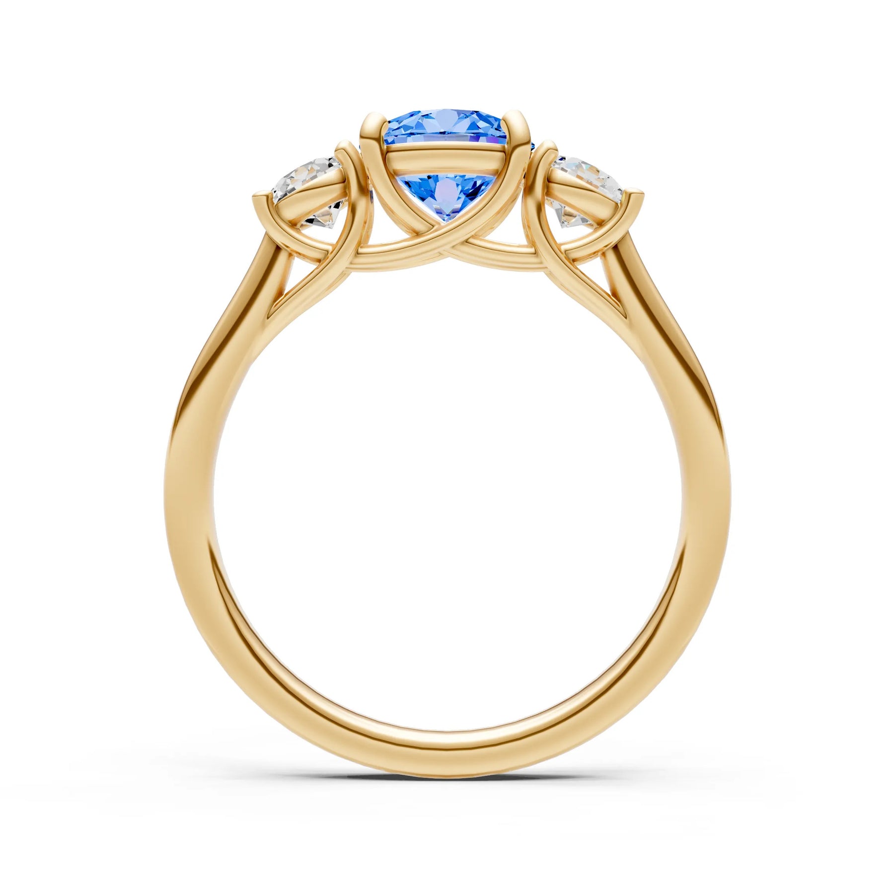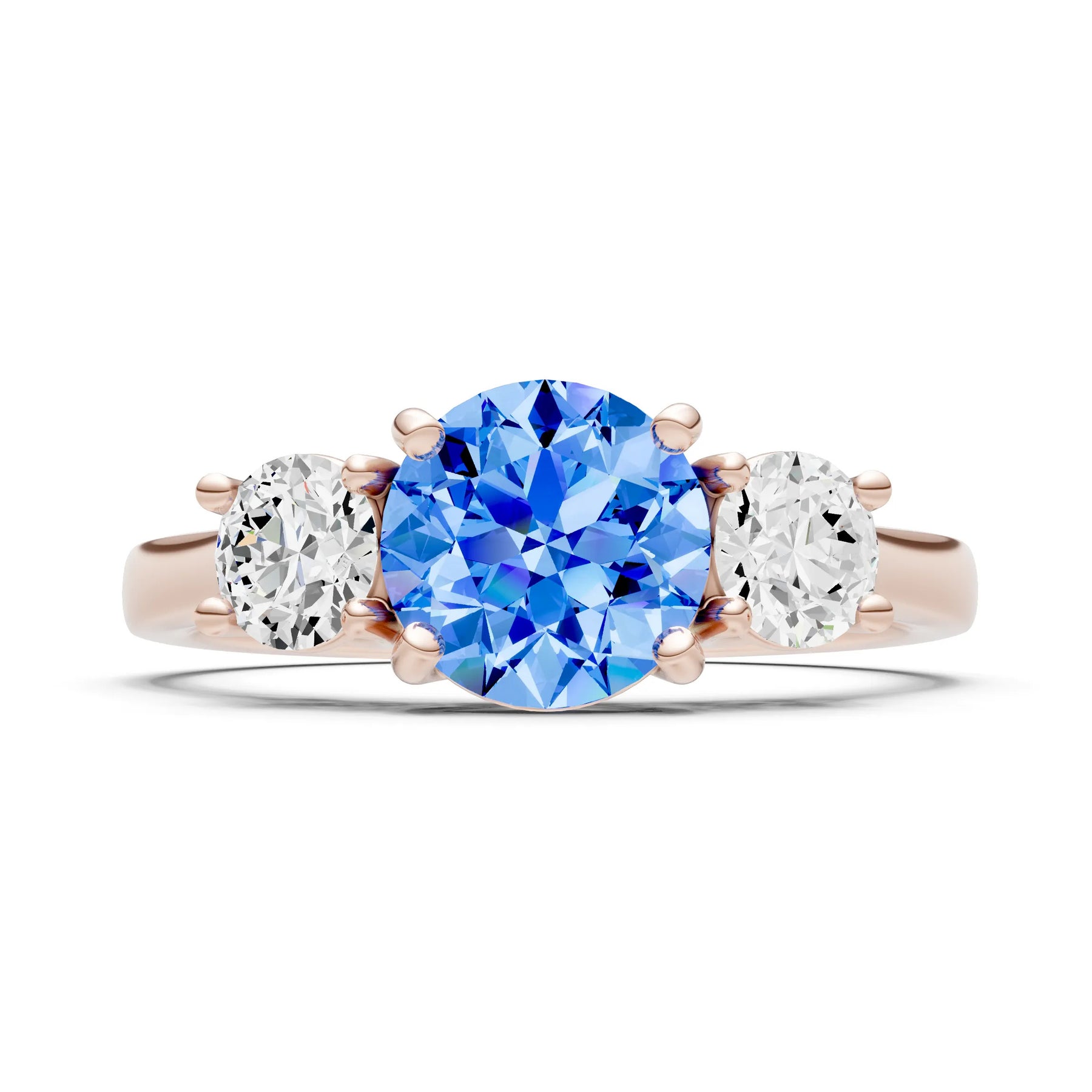 Swiss Blue Topaz Three Round Cut Stone Ring