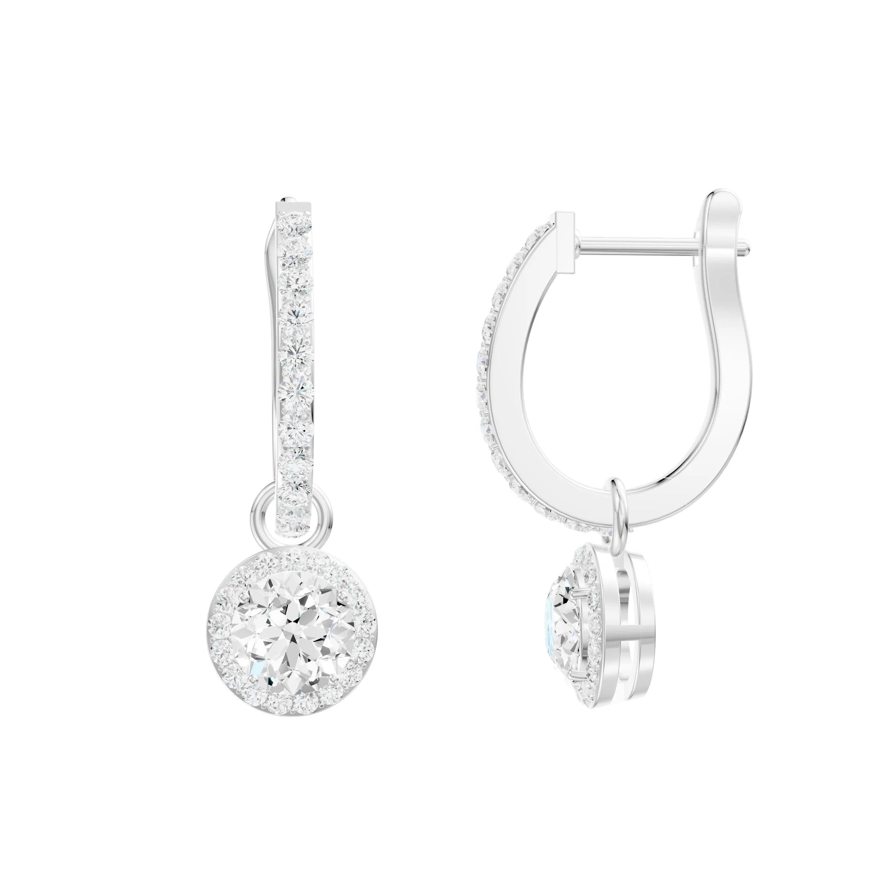 Diamond Round Halo Drop Hoops Earrings - 5mm