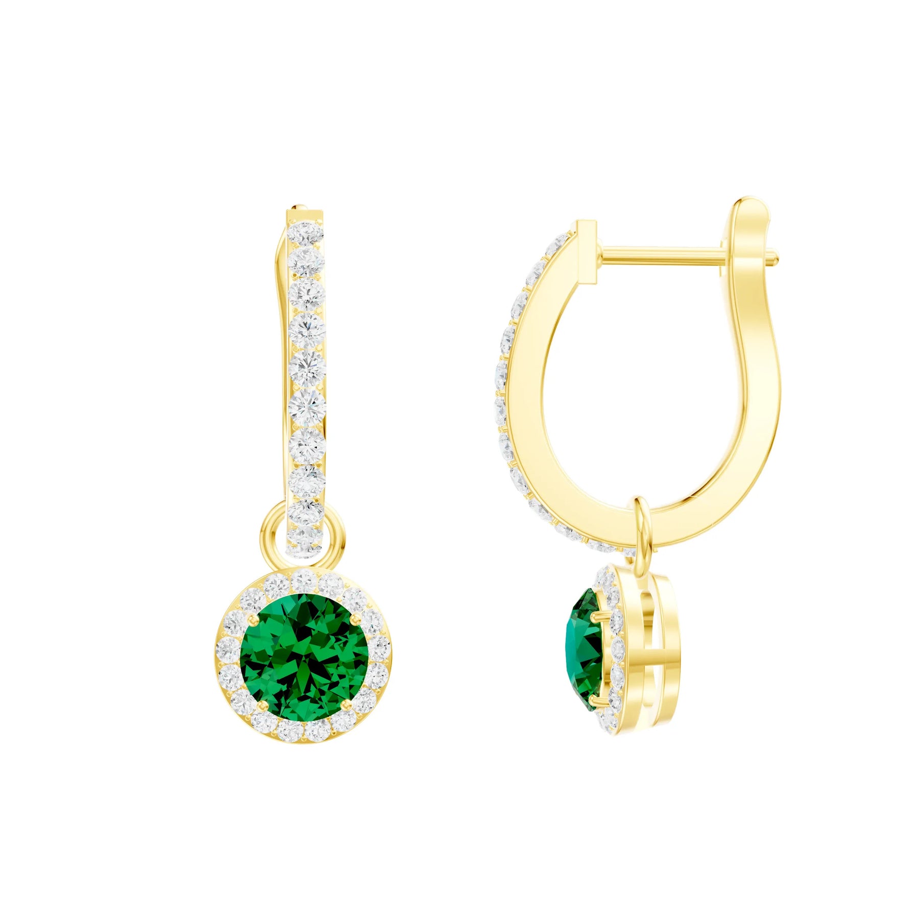 Emerald Round Halo Drop Hoops Earrings - 5mm