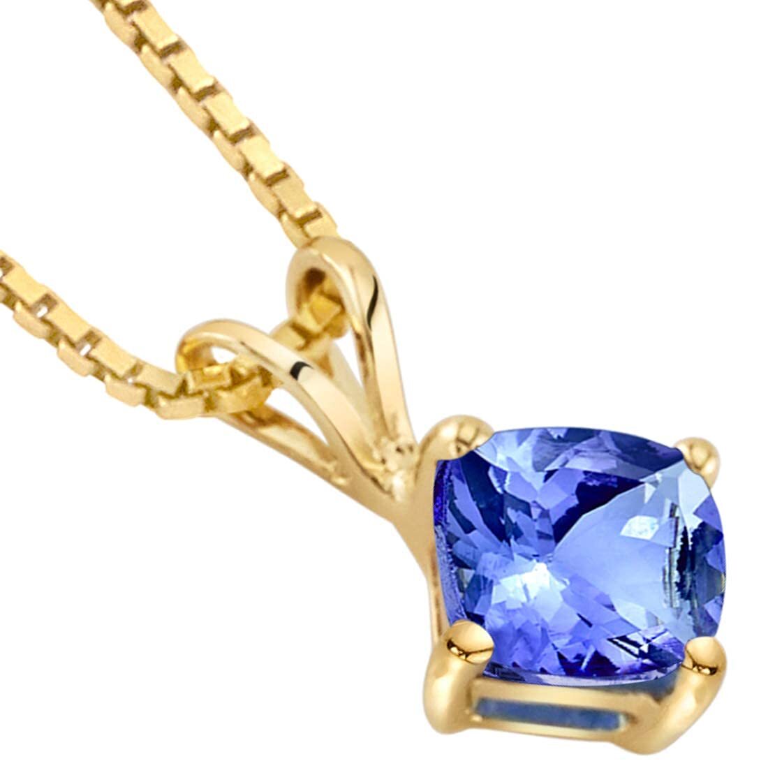 Tanzanite Pendant Necklace 14K Yellow Gold Cushion Cut 1 Carat
