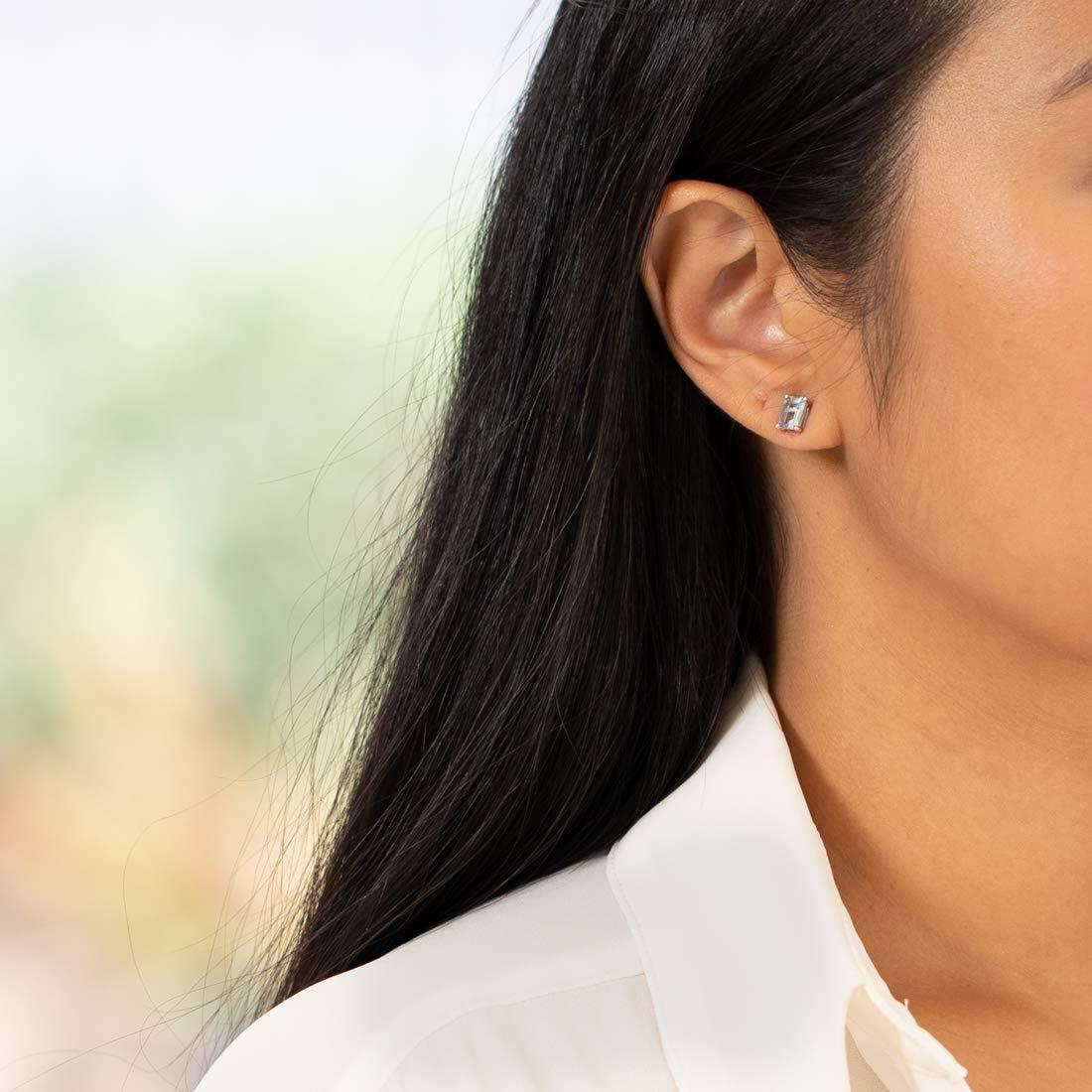 These versatile earrings feature emerald shape Peora natural aquamarine gemstones in 14K yellow gold.