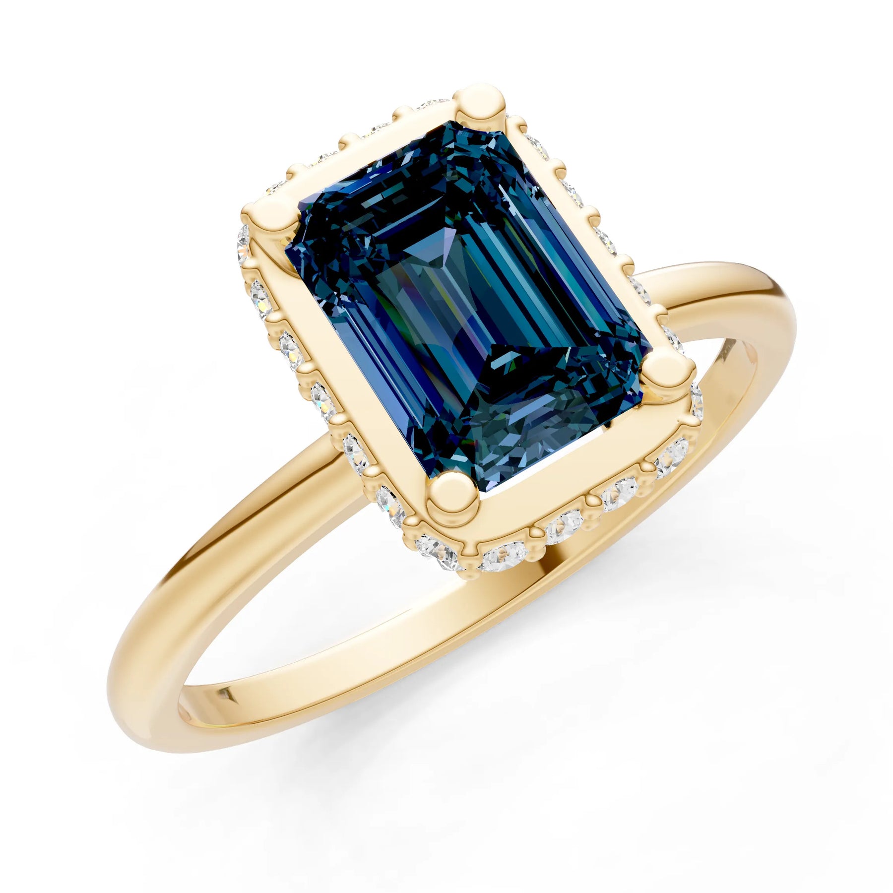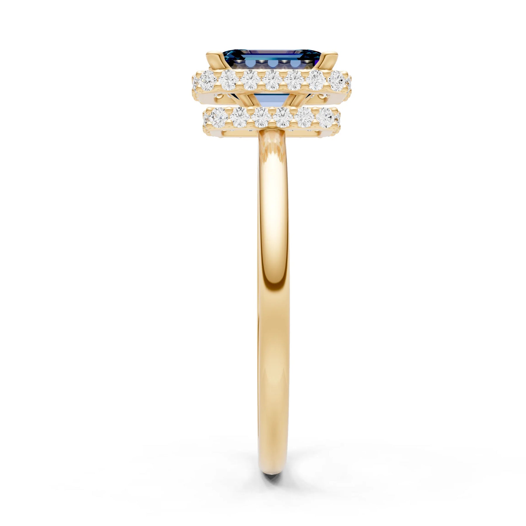 Alexandrite Emerald Hidden Double Halo Engagement Ring
