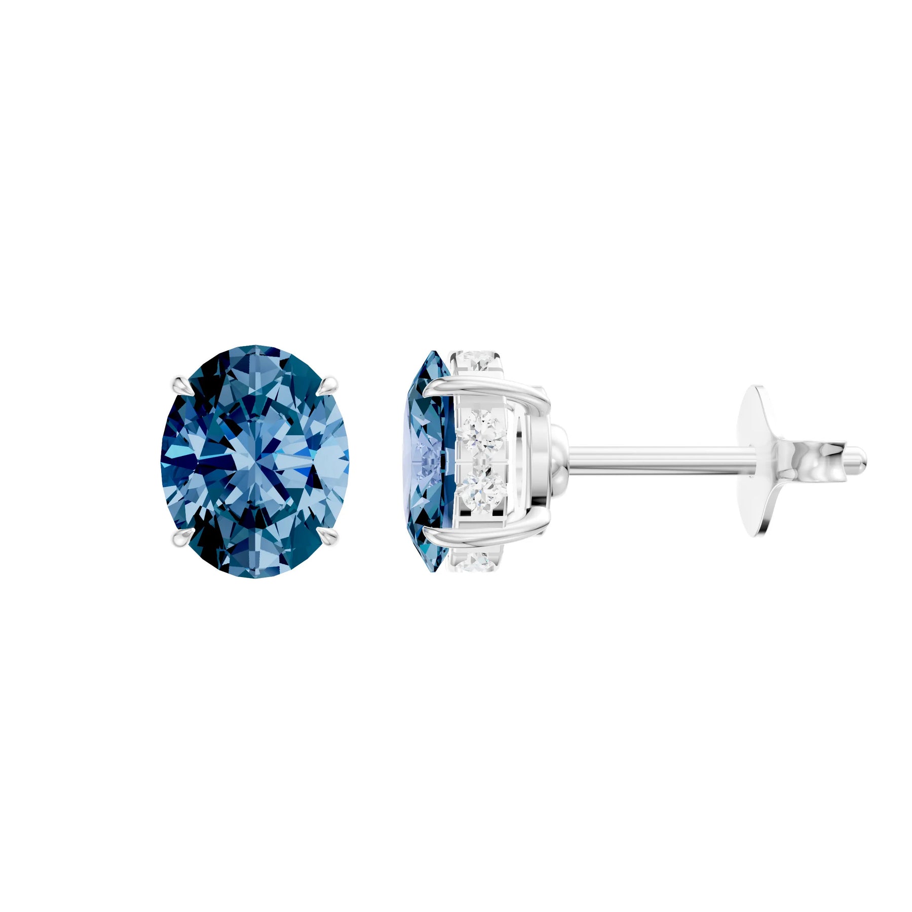 Alexandrite Hidden Halo Earrings - Oval - 5x3mm