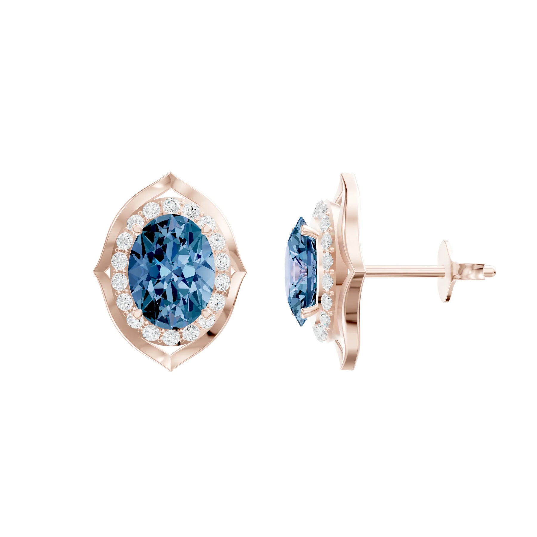 Alexandrite Oval Halo Earrings - 8x6mm