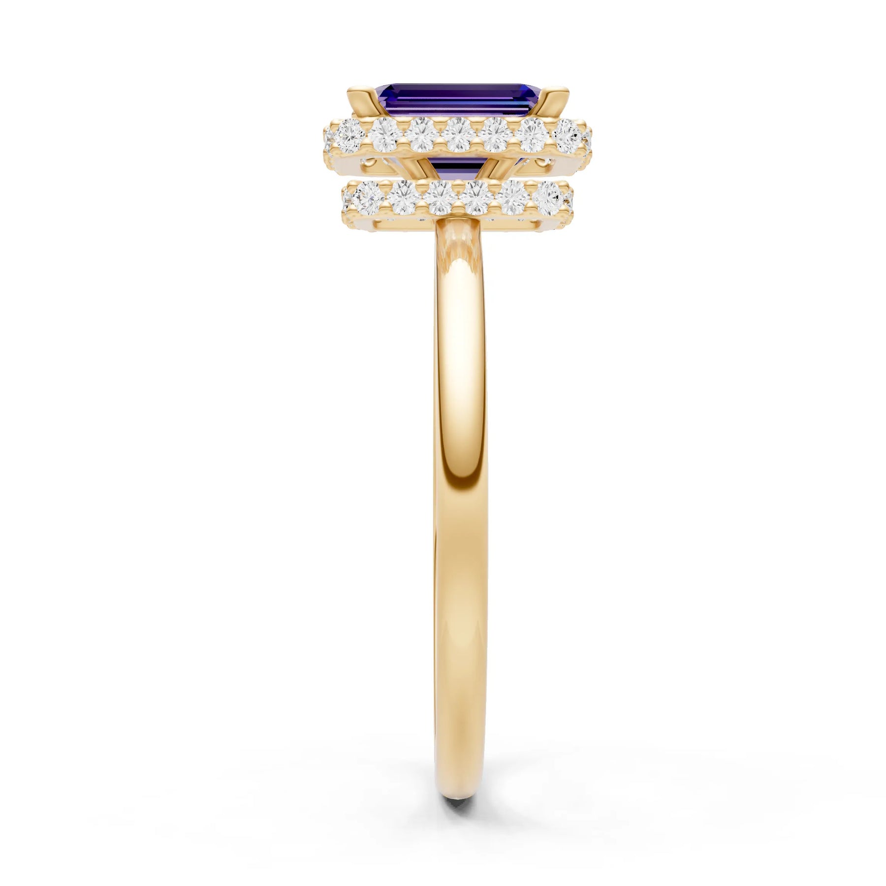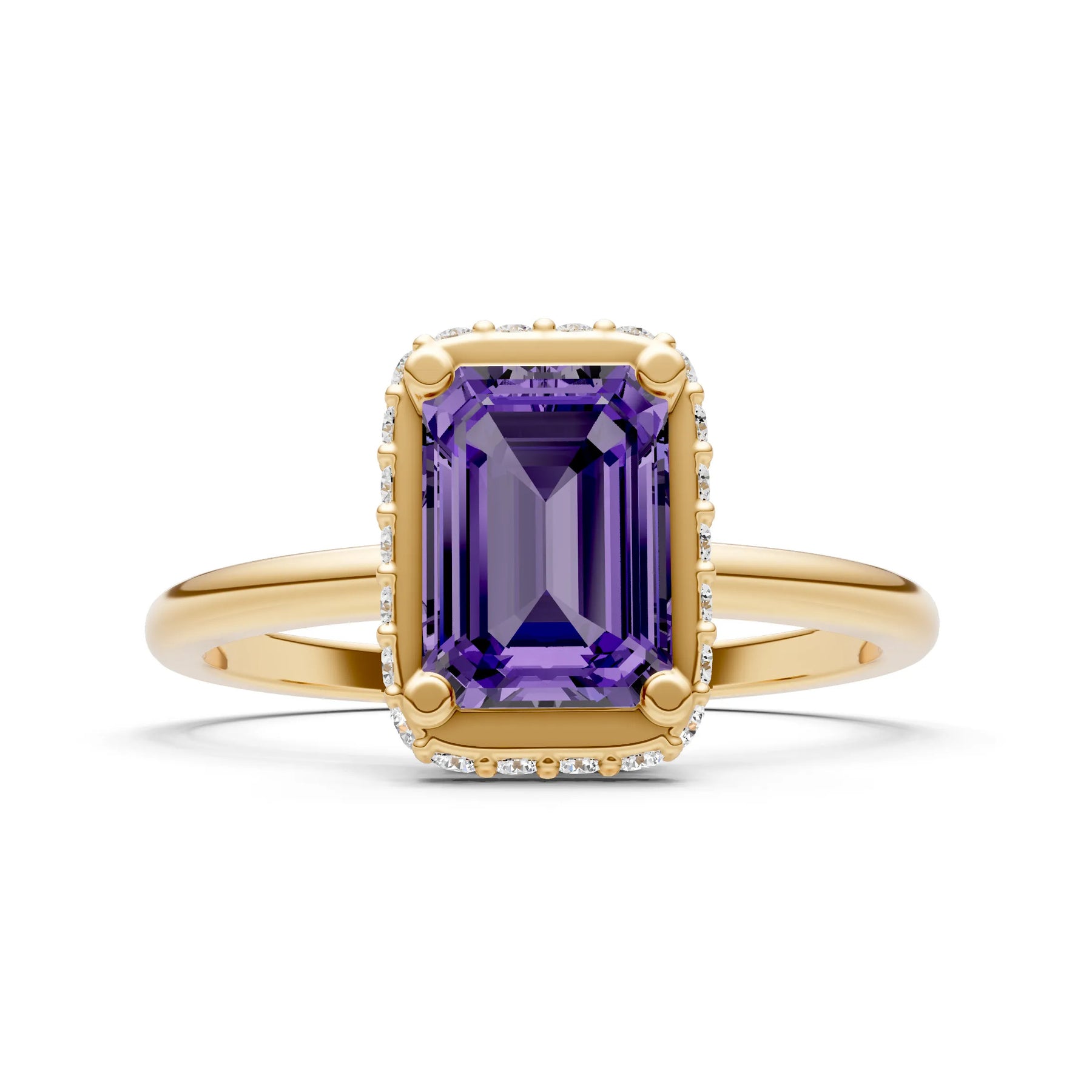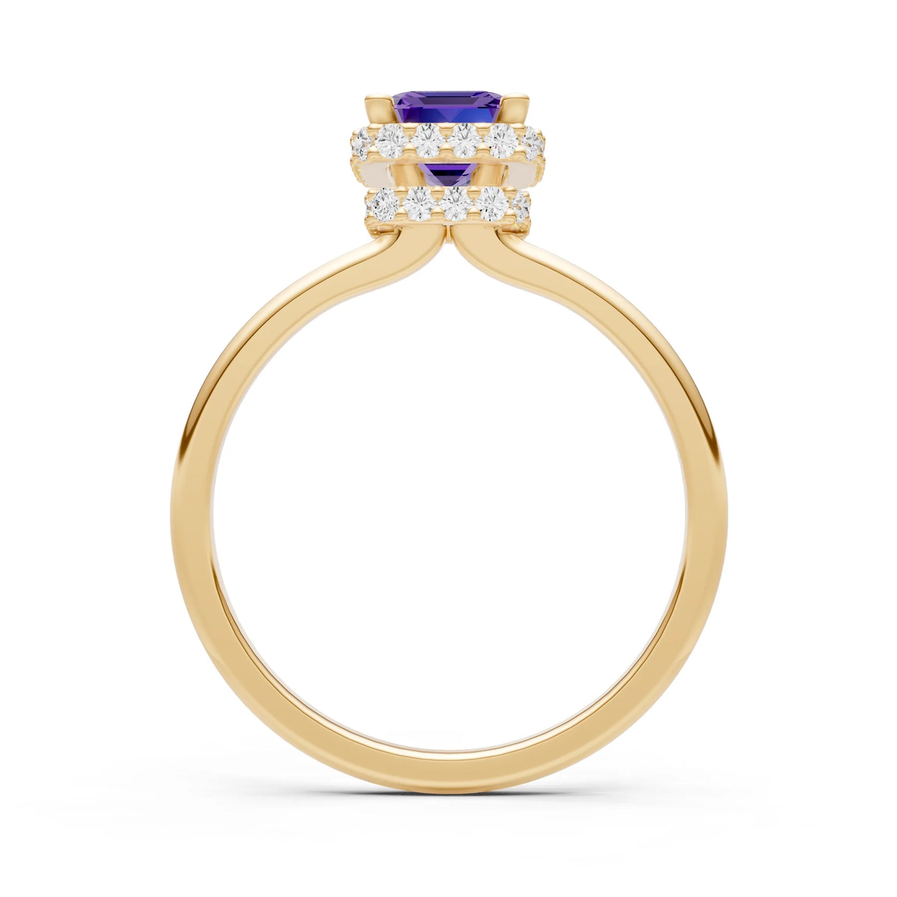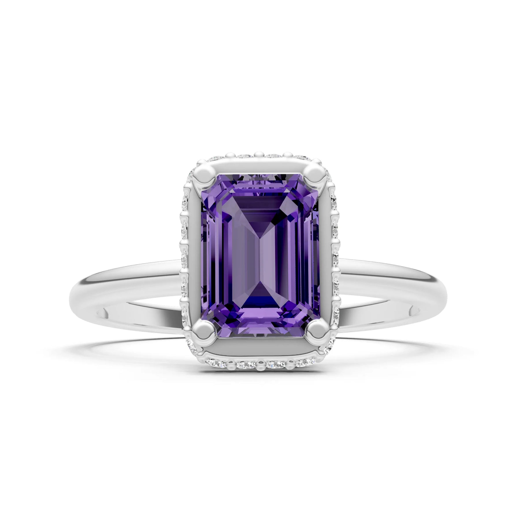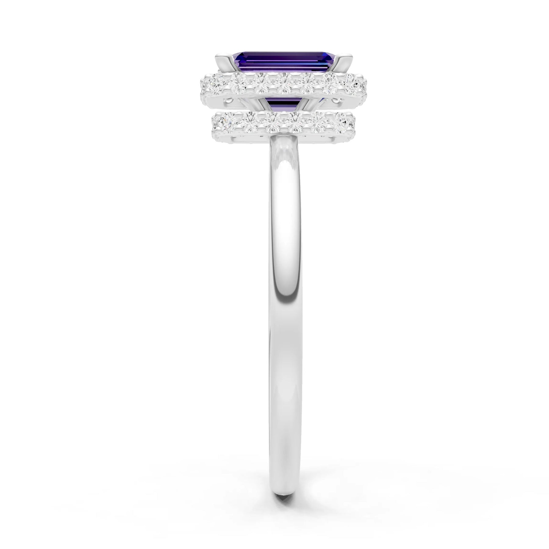 Amethyst Emerald Hidden Double Halo Engagement Ring